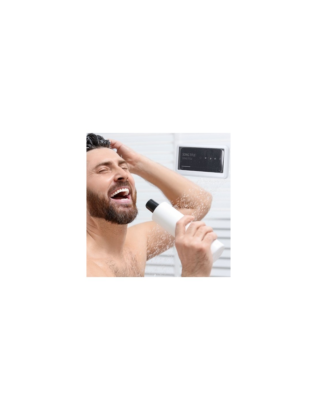 Soporte impermeable para smartphone, ideal para su uso en la ducha. Compatible con todo tipo de smartphones, cuenta con una amplia pantalla táctil para un cómodo uso del dispositivo. Incorpora un soporte orientable con rotación de 360, que facilita ajustar la posición del dispositivo. Su instalación es rápida y sencilla gracias al resistente adhesivo de doble cara en la base. Impermeable. Pantalla Táctil