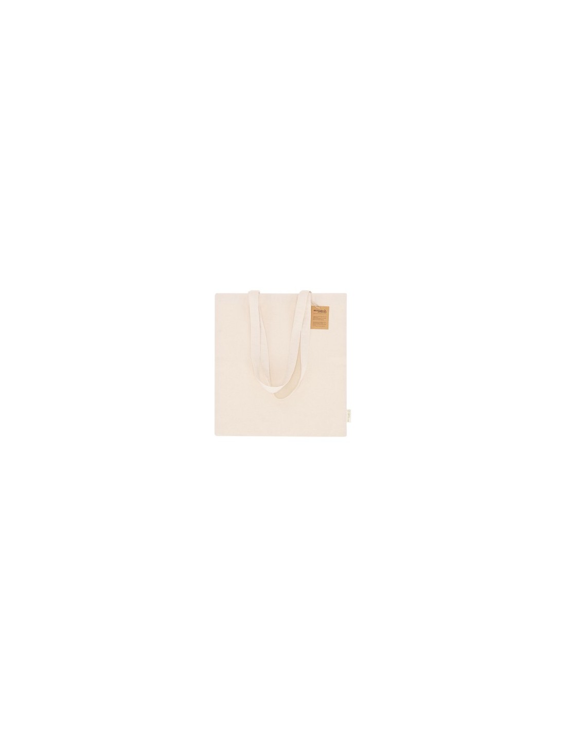 Bolsa en algodón reciclado de 180 g/m2. Asas largas. Incluye distintivo algodón reciclado. Resistencia de hasta 7 kg. Composition : Algodón Reciclado 180 g/ m2.