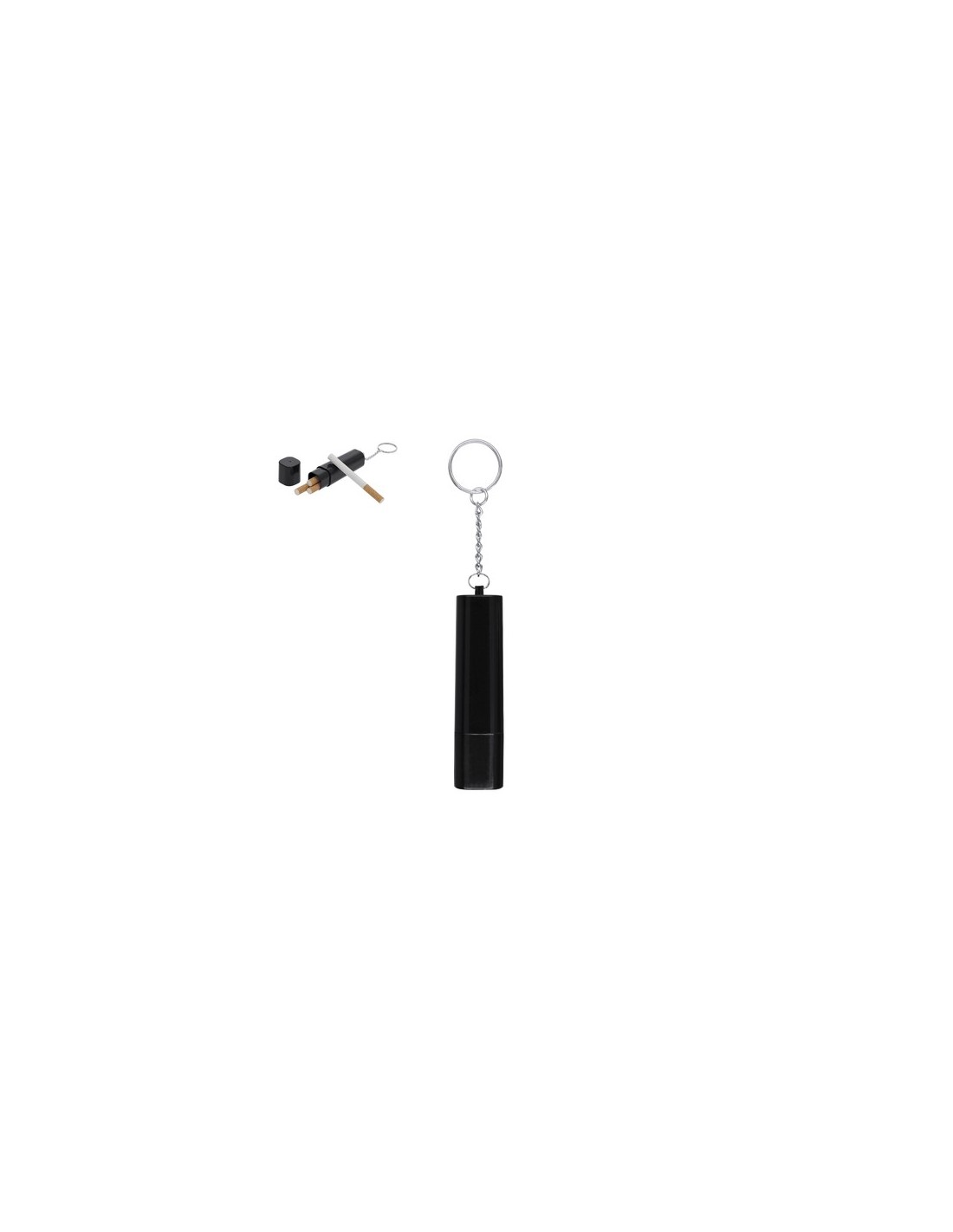Práctico llavero estuche para tabaco de diseño compacto, ideal para un transporte cómodo. Ofrece capacidad para cuatro cigarros con una tapa extraíble y metálica anilla llavero.
