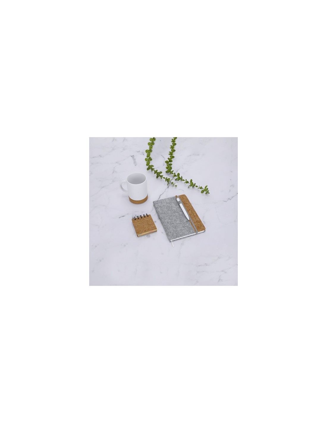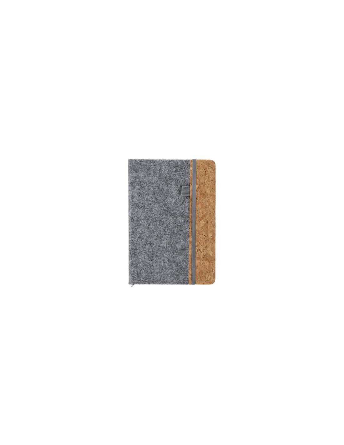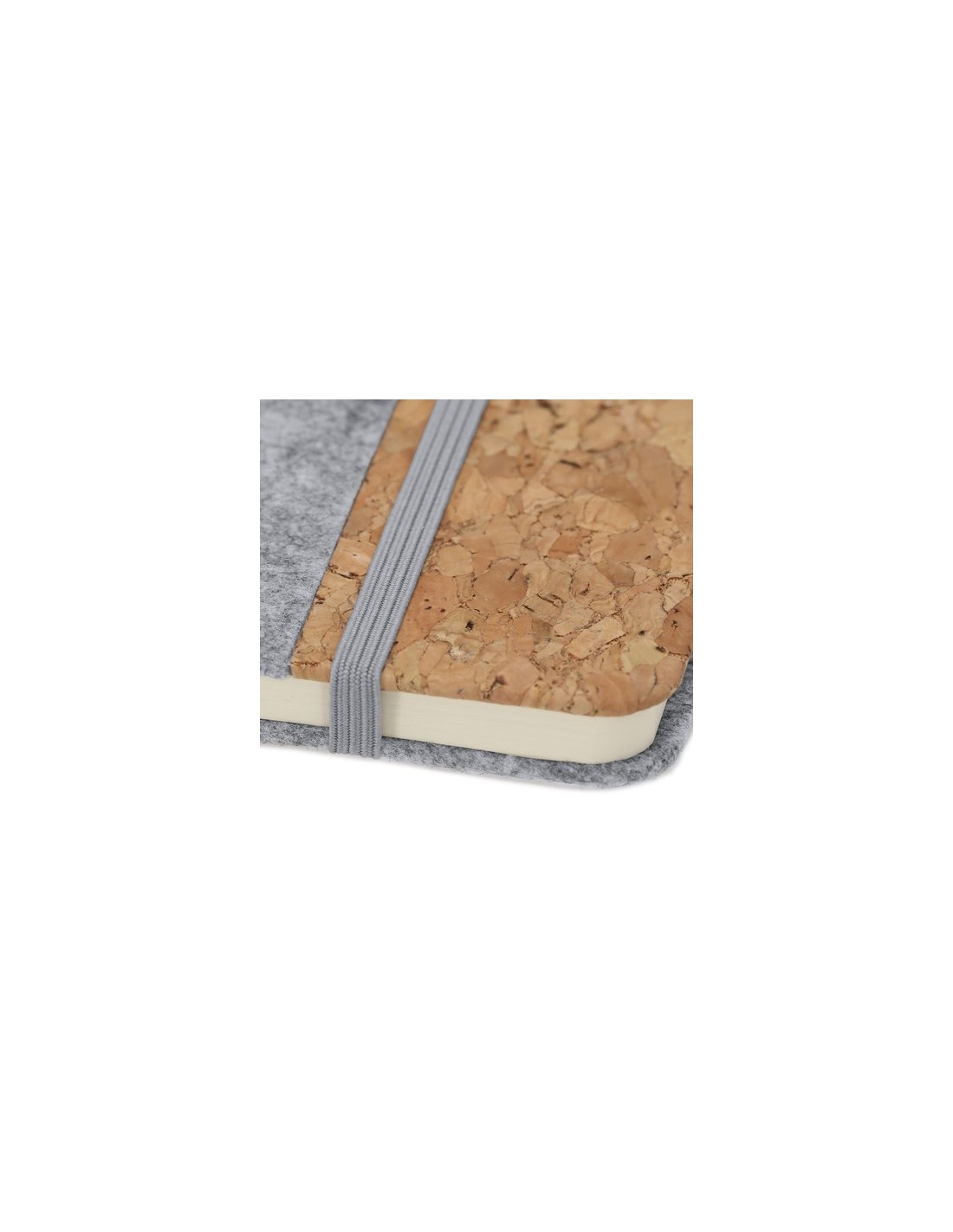 Bloc de notas con tapas rígidas elaboradas en combinación de fieltro RPET y corcho. Incluye 80 hojas a una raya con elástico de sujeción para bolígrafos en portada, banda elástica de cierre y marcapáginas a juego. Incliye distintivo RFELT.Elaborado con elementos vegetales para así fomentar la utilización de materias primas naturales y reducir las emisiones contaminantes.El fieltro RPET es fruto de la combinación del proceso de reciclaje de materiales plásticos junto con la técnica milenaria de fabricación del fieltro, dando como resultado un material de eco-tendencia que, además de ser de origen reciclado, también se convierte en reciclable. Portada Rígida. 80 Hojas Composition : Fieltro RPET/ Corcho.