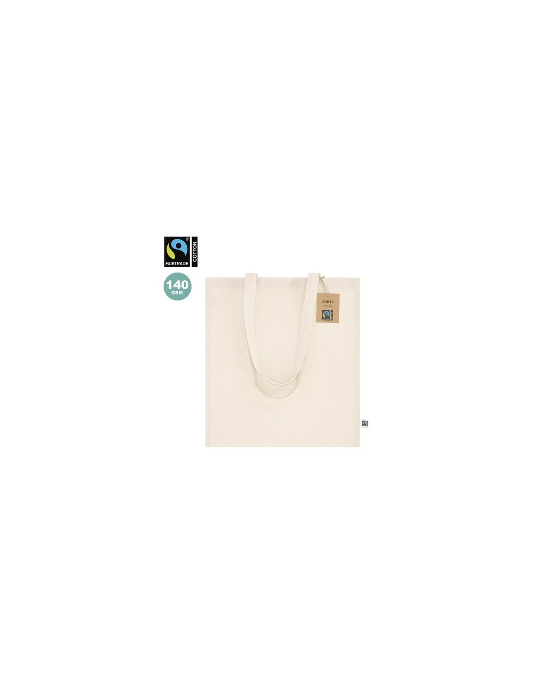 Bolsa confeccionada principalmente en algodón de 140g/m2. Con certificación Fairtrade (Comercio Justo) un sistema comercial solidario y alternativo al convencional que persigue el desarrollo de los pueblos y la lucha contra la pobreza. De acabado cosido, con asas largas de 70cm y resistencia hasta 7kg de peso. Incluida etiqueta Fairtrade y hangtag distintivo en cartón reciclado. Composition : Algodón 140 g/ m2.