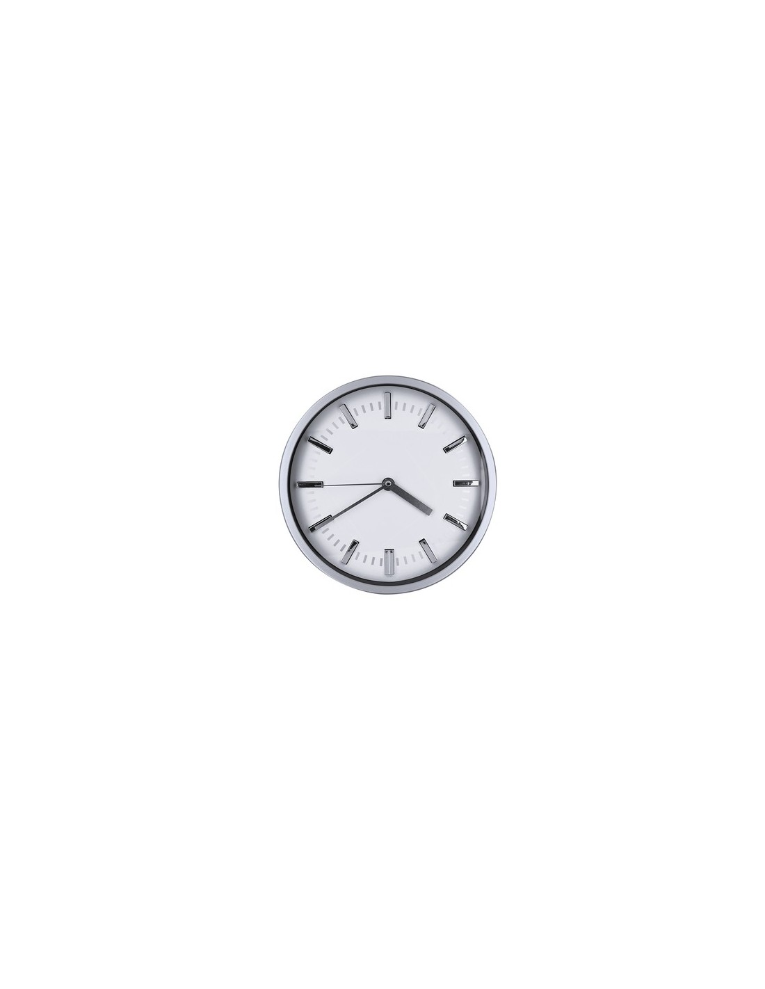 Reloj de pared fabricado con estructura de aluminio y vidrio. La esfera se distingue por marcadores de horas cromados y cuartos en tono plata, ofreciendo un estilo sofisticado y funcional.Alimentación a pilas (1xAA no incluida). 1 Pila AA No Incluida