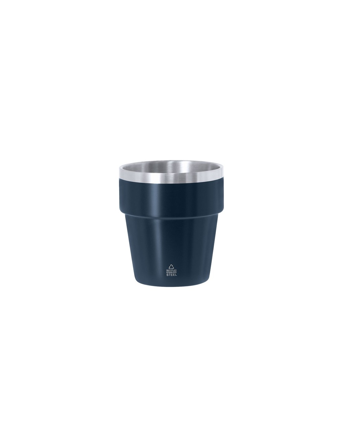 Vaso térmico fabricado en Acero Inox Reciclado de doble pared y 250 ml de capacidad. Recubrimiento en color satinado y borde e interior en color acero satinado. Con logotipo Acero Inox Reciclado.El acero es uno de los materiales más demandados y que puede encontrarse casi en todas partes, desde productos de uso diario a grandes construcciones. Con innumerables propiedades, entre las que cabe destacar la durabilidad y su alto grado de reutilización, convirtiéndolo en una alternativa muy valorada en soluciones de sostenibilidad. Debidamente tratado, permite obtener nuevos recursos de infinita utilización. 250 ml Composition : Acero Inox Reciclado.