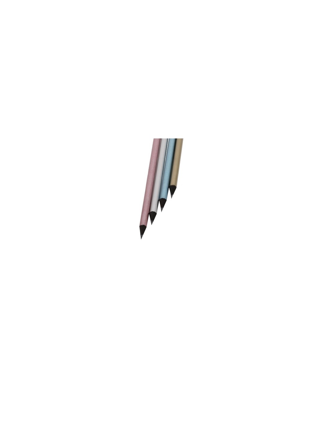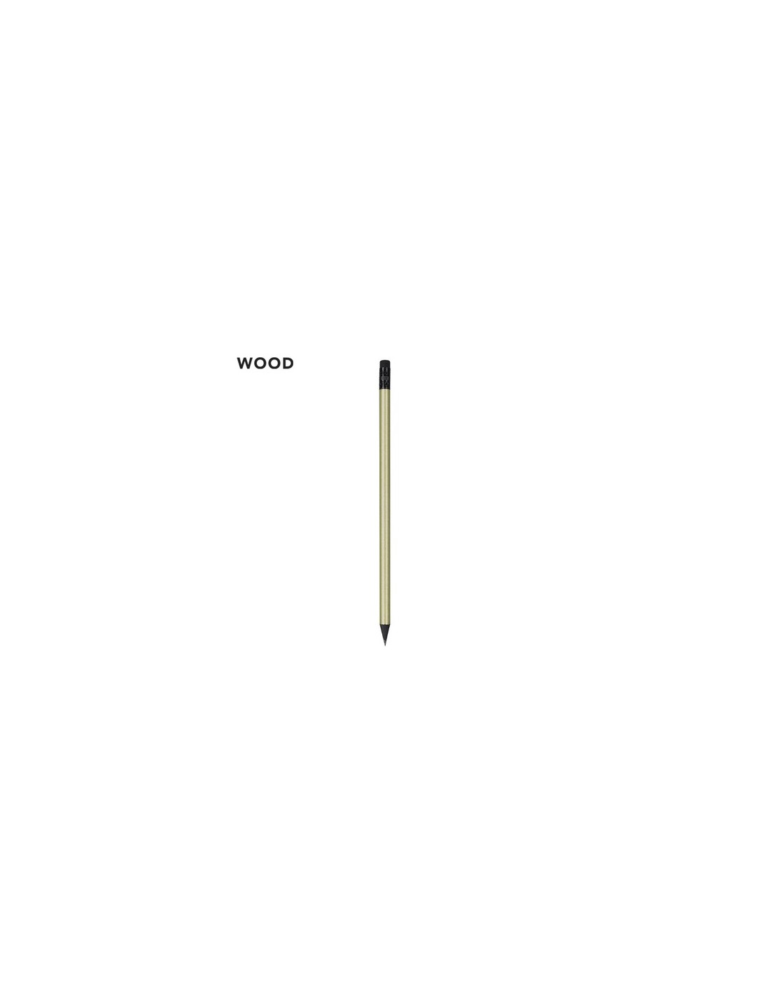 Lápiz de color metalizado con interior negro fabricado en madera. Incluye goma en color negro. Con mina negra y punta afilada. Composition : Madera.