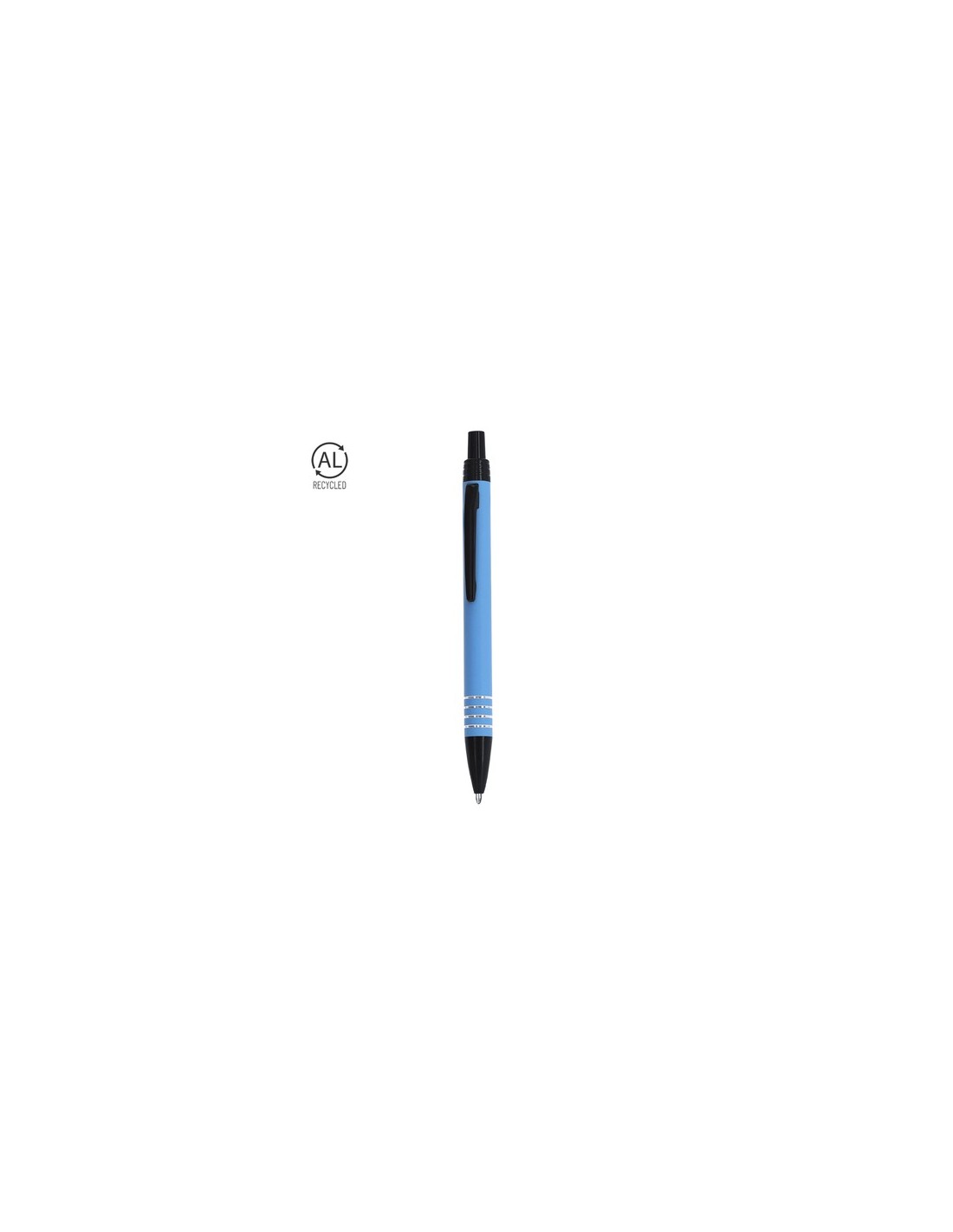 Bolígrafo fabricado en Aluminio Reciclado. De mecanismo pulsador, con accesorios en color negro y anillas en plateado. De cartucho jumbo y en tinta azul. Distintivo de Aluminio Reciclado en parte superior.El aluminio reciclado es un material con posibilidades de reciclaje casi infinitas, sin perder sus propiedades originales y consumiendo menos energía en este proceso.Certificación GRS (Global Recycled Standard / Estándar de Reciclaje Global), que garantiza el origen reciclado del material usado para fabricar el producto. Carga Jumbo Composition : Aluminio Reciclado.