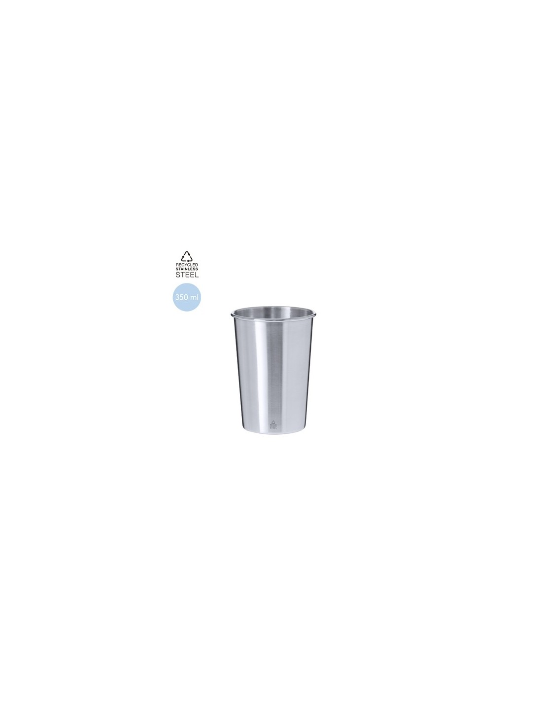 Vaso de acero inoxidable reciclado de 350 ml de capacidad. Con acabado cromado. Incluye distintivo de acero inoxidable reciclado.El acero es uno de los materiales más demandados y que puede encontrarse casi en todas partes, desde productos de uso diario a grandes construcciones. Con innumerables propiedades, entre las que cabe destacar la durabilidad y su alto grado de reutilización, convirtiéndolo en una alternativa muy valorada en soluciones de sostenibilidad. Debidamente tratado, permite obtener nuevos recursos de infinita utilización. 350 ml Composition : Acero Inox Reciclado.