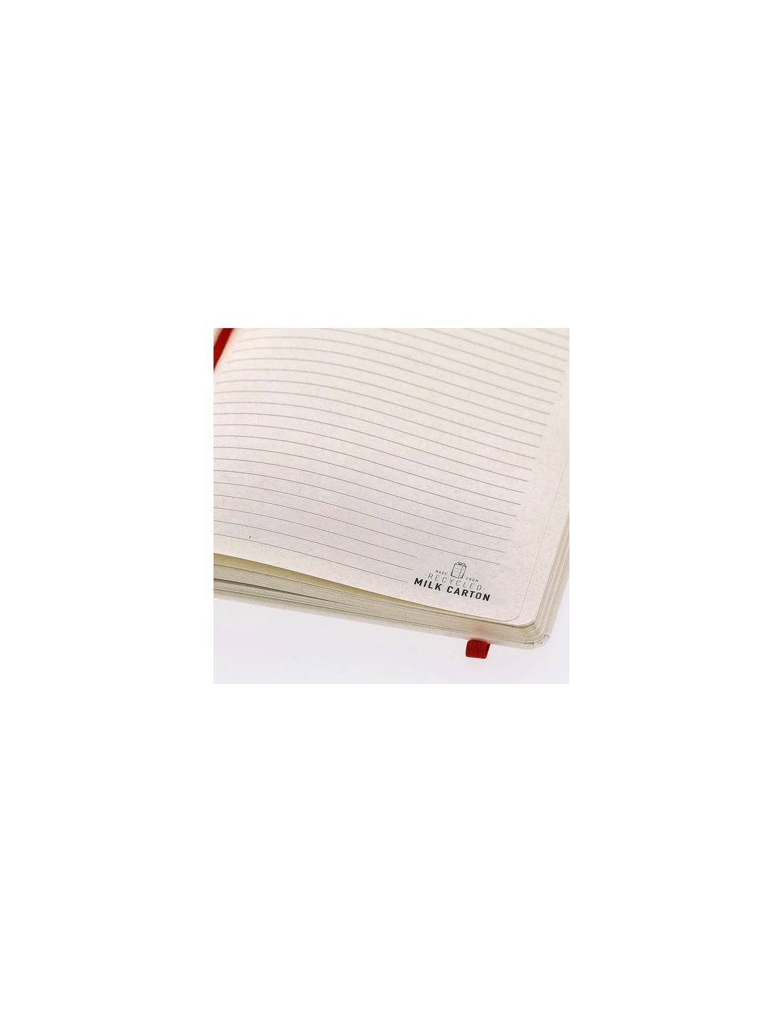 Bloc de notas con con tapas rígidas elaborado con cartones de leche reciclados. Incluye 80 hojas de color natural a rayas, con banda elástica y marcapáginas a color. Incluye distintivo Recycled Milk Carton en contraportada y hojas interiores.Los cartones de leche se componen en su mayor parte de cartón y aluminio. Durante su proceso de reciclado, se separan los distintos materiales del envase para su reutilización y nuevo uso, contribuyendo así a recorrer el camino infinito de la economía circular. Este material se caracteriza por su alto grado de reciclabilidad, así como por su ligereza y resistencia. Portada Rígida. 80 Hojas Composition : Cartones de Leche Reciclados.