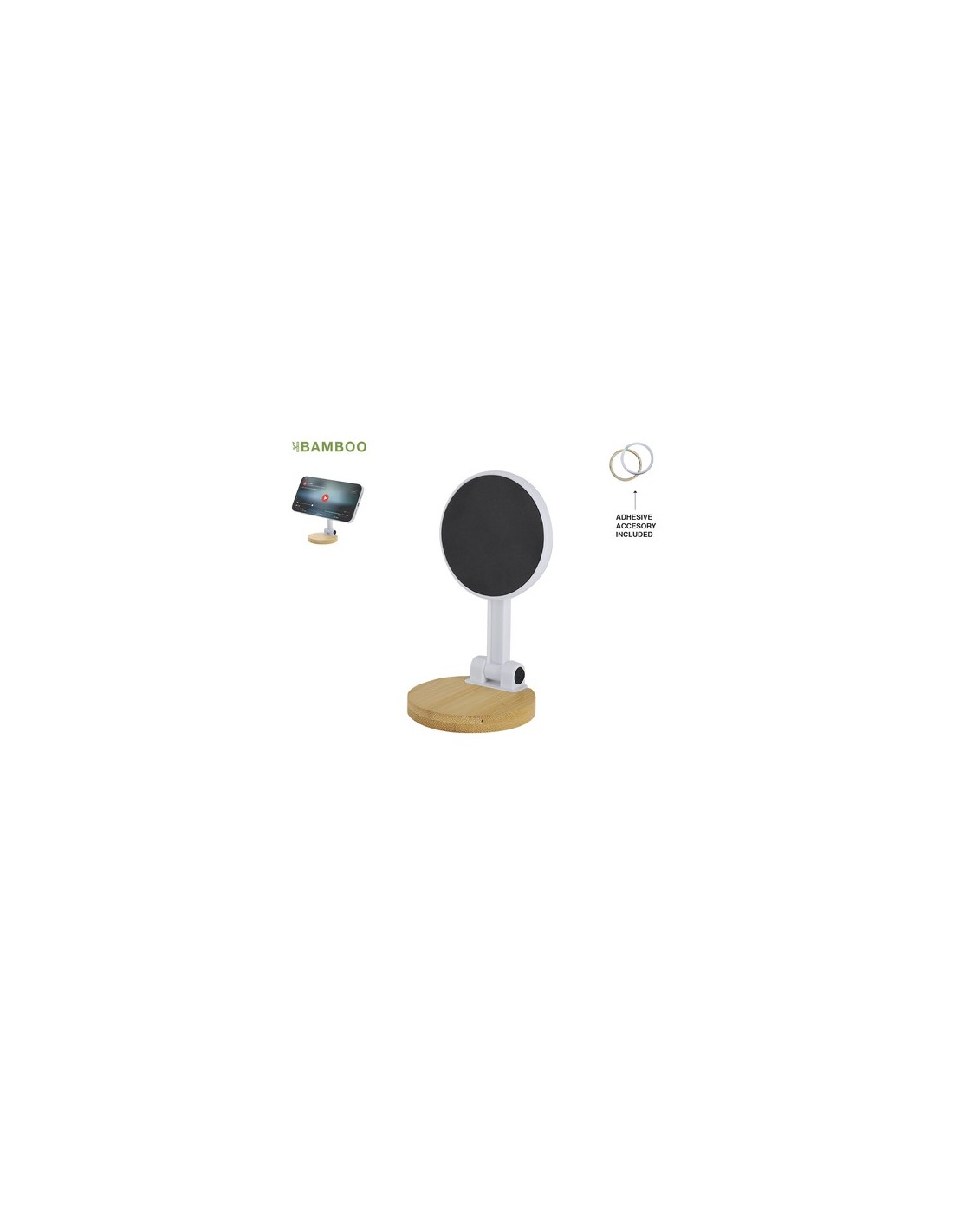 Soporte plegable para smartphones. Con fijación magnética, MagSafe y posición ajustable para mayor comodidad. Incluye anillo metálico adhesivo.Materiales como el bambú fomentan la utilización de materias primas naturales, reduciendo las emisiones contaminantes. Proviene de una planta de gran resistencia y versatilidad, con crecimiento y regeneración rápidos, siendo una excelente alternativa al uso de madera tradicional. Magnético. Plegable. Altura Regulable Composition : Bambú.