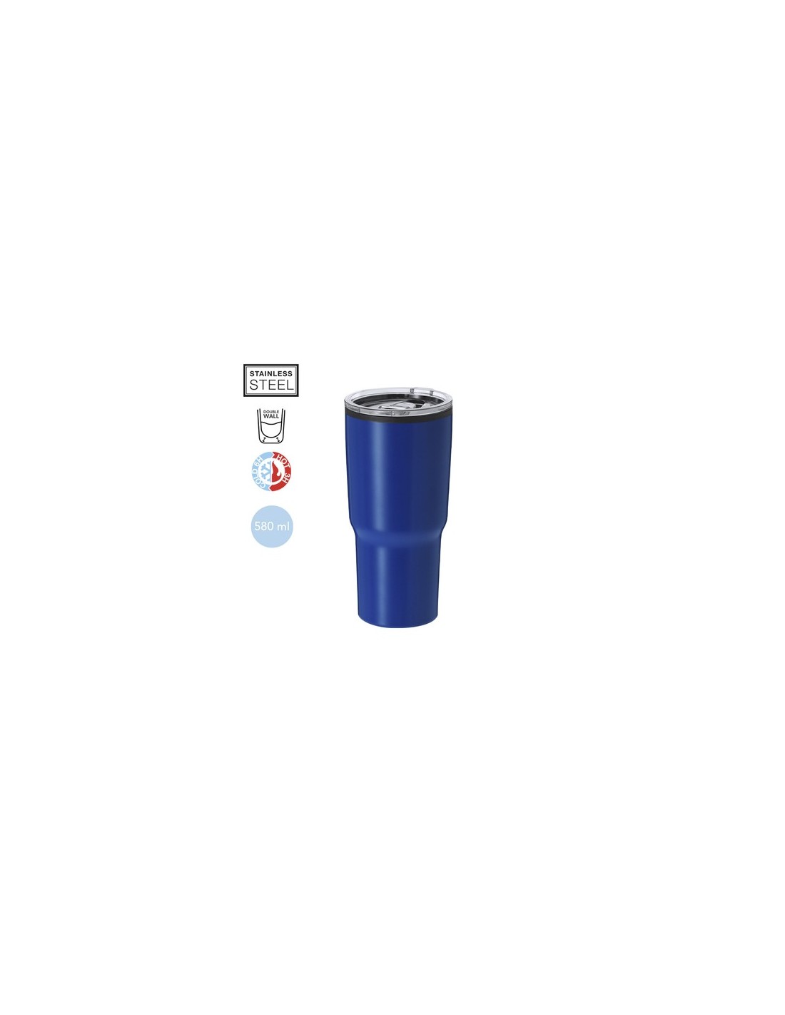 Vaso térmico en acero inox de doble pared y 580 ml de capacidad. Con dosificador en tapa transparente de fácil apertura, libre de BPA. Es ideal para tener en tu escritorio, mesa o en cualquier superficie donde disfrutar tranquilamente de tu bebida favorita. 580 ml Composition : Acero Inox/ PP.