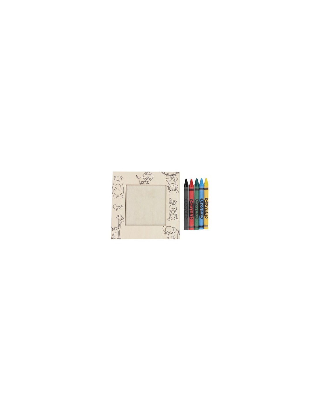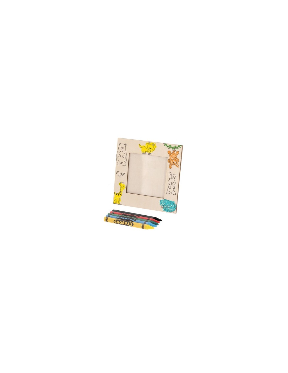 Marco de fotos fabricado en madera natural con diseño de animales. Incluye ceras de colores para personalizar y decorar el marco. Diseñado para fotografías de 7,5x7,5 cm. Cuenta con práctico soporte trasero de bisagra. Fotos: 7,5 x 7,5 cm. 5 Ceras Incluidas Composition : Madera.