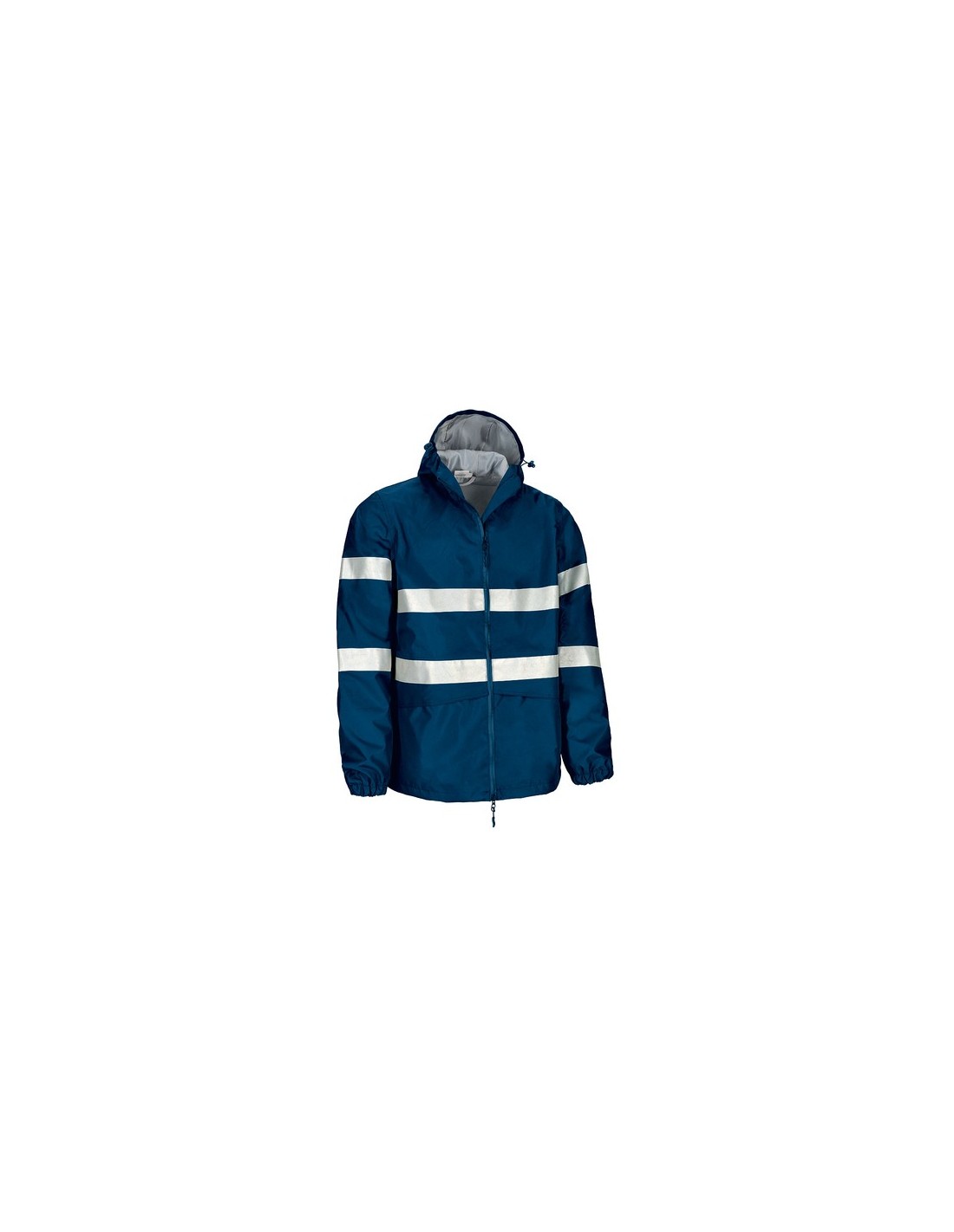 Chaqueta impermeable de Visibilidad Realzada.Confeccionada en tejido impermeable Canvas exterior y forro liso interior, incluye dos cintas retro-reflectantes termo-fijadas en torso, espalda y mangas para mayor seguridad sin perder libertad de movimiento.Prenda certificada como EPI de Categoría II de Visibilidad Realzada en base a las normas 13688 y 17353, tipo B3 para visibilidad nocturna, con duración máxima de 50 lavados.Capucha con cuello alto para mayor protección, puños elásticos, cintura con cordón elástico y freno regulador para mejor ajuste y mayor comodidad, incluye dos bolsillos frontales ocultos.Costuras termo-selladas y cremalleras impermeabilizadas para evitar filtraciones de agua y mantener el cuerpo seco ante la lluvia.Métodos idóneos de marcaje: serigrafía, transfer, vinilo.Ideal como ropa laboral y uniformes de trabajo, prenda a juego con el pantalón impermeable de Visibilidad Realzada DONNELLY, se venden por separado. Composición : exterior: 100% poliester - interior: 100% poliester