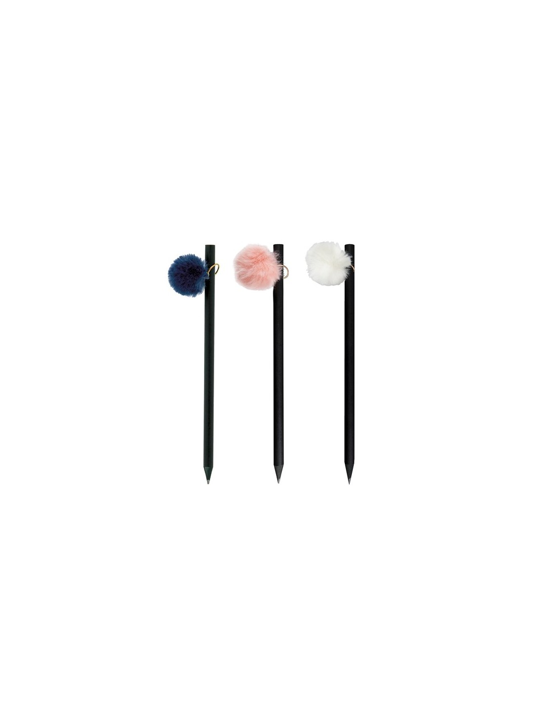 Lápiz de madera de color negro con pompón colgante en distintos colores Material : Madera / Poliéster