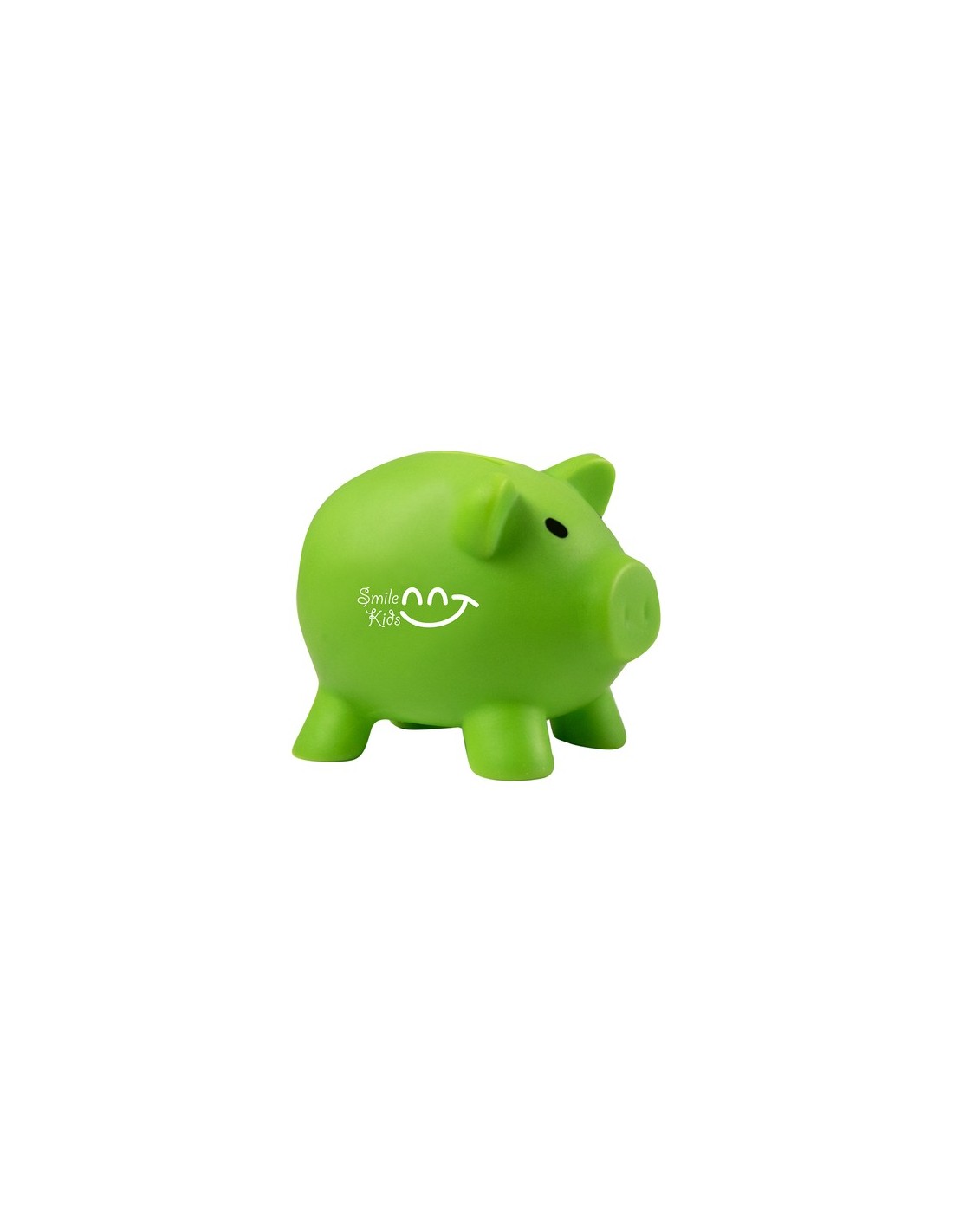 Hucha fabricada en plástico con forma de cerdito disponible en divertidos colores Material : Plástico