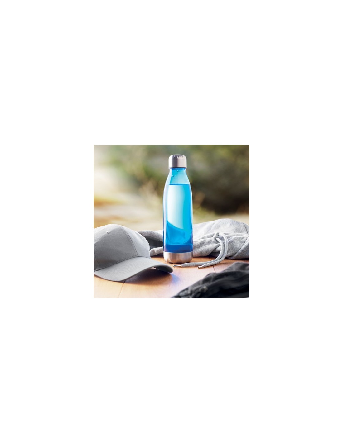 Botella de bebida en Tritan ™ no contiene BPA con tapa y fondo de acero inoxidable. Capacidad: 600 ml. No apto para bebidas gaseosas. Anti fugas.