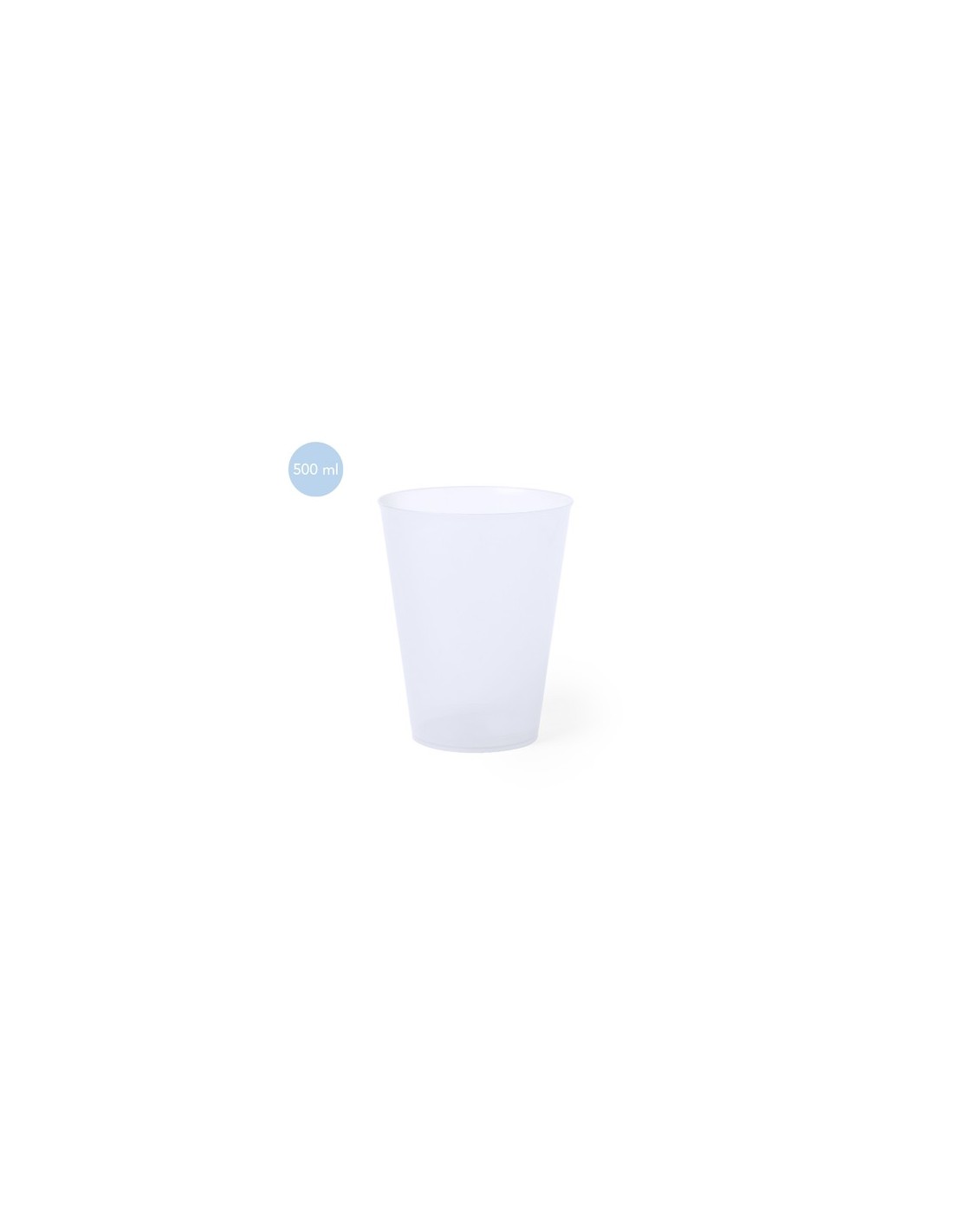 Vaso de 500ml de capacidad en resistente y flexible material PP. Reutilizable y en acabado translúcido. 500 ml Composition : PP.