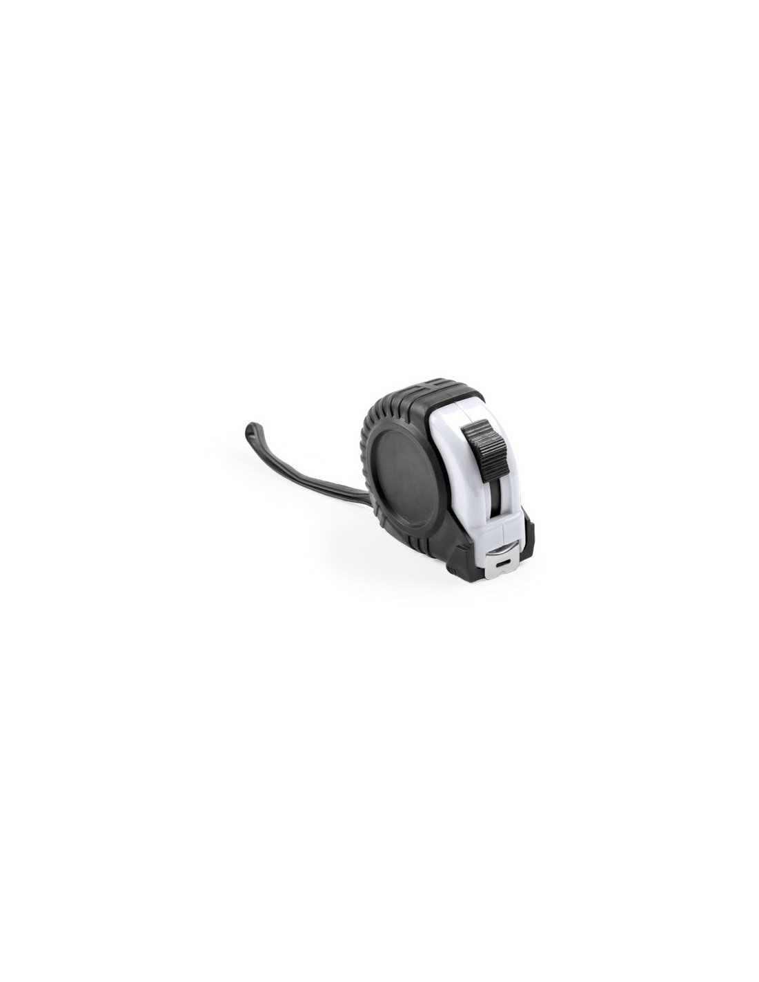 Flexómetro de 3 metros con cuchilla metálica y mecanismo de bloqueo. Con cuerpo de suave acabado en variados colores, recubierto con funda protectora de resistente goma, clip metálico para cinturón y cinta de transporte. Con troquelado especial para marcaje en doming/gota de resina y presentado en caja individual. Con Freno y Clip Incluido