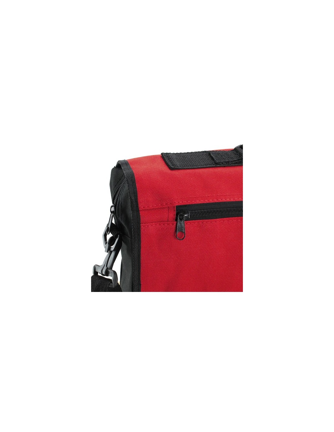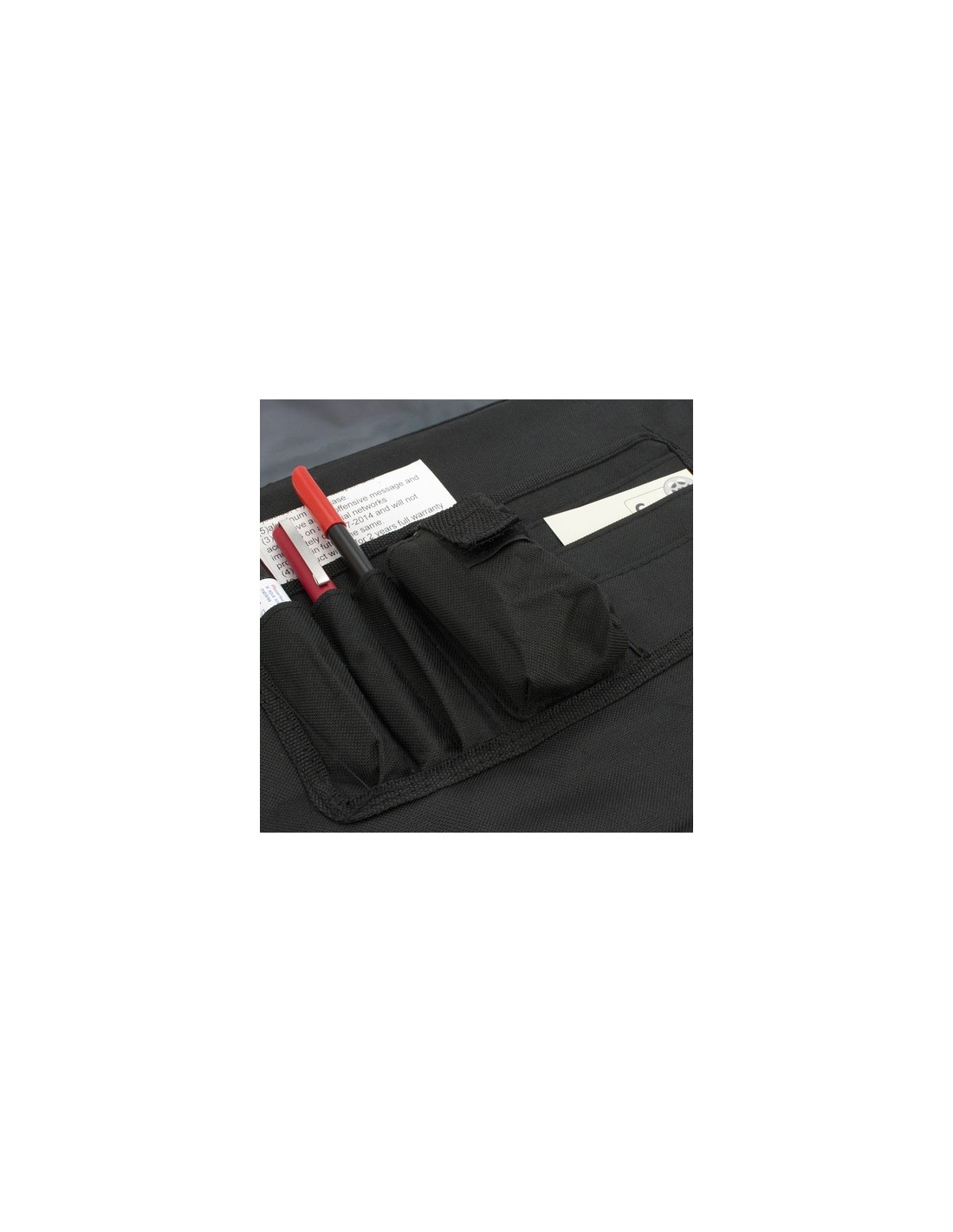 Portadocumentos con solapa de cierre de velcro en poliéster 600D con elegante tira frontal en color negro. Con asas de transporte reforzadas y cinta bandolera ajustable. Compartimentos interiores para bolígrafos y funda para smartphone en PVC con función táctil. Composition : Poliéster 600D.