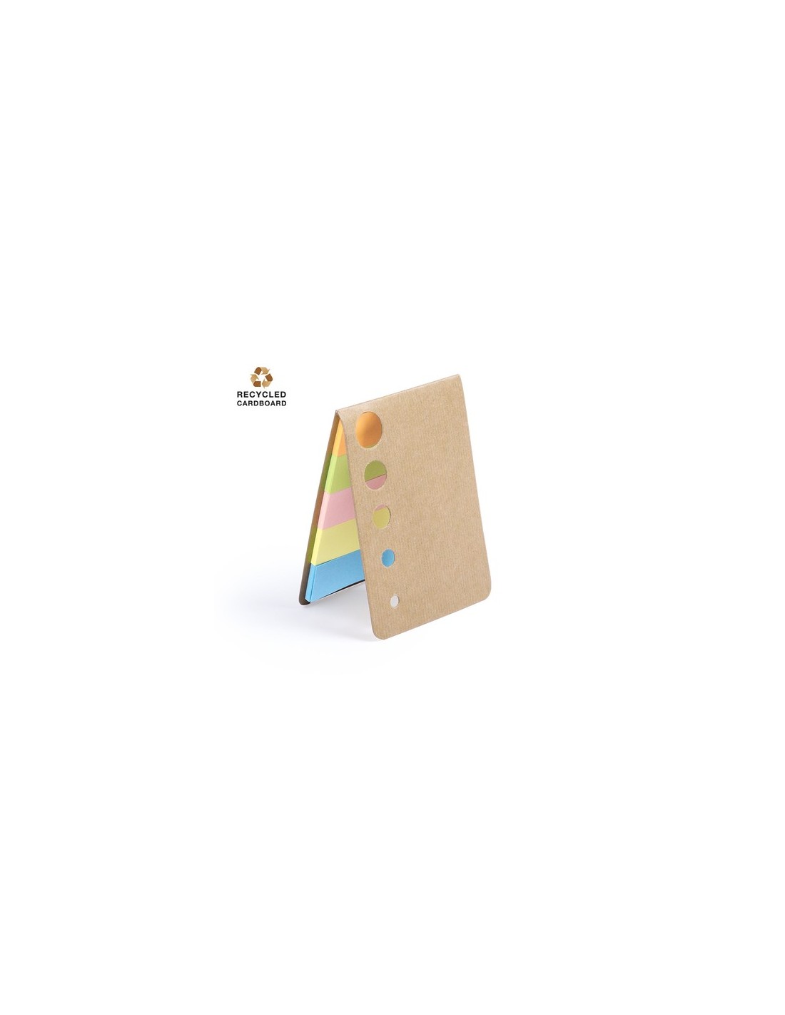 Bloc de notas adhesivas con tapa troquelada de suave tacto acabada en cartón reciclado. Con 100 mini notas adhesivas. 100 Notas Adhesivas 1,5 x 5 cm Composition : Cartón Reciclado.