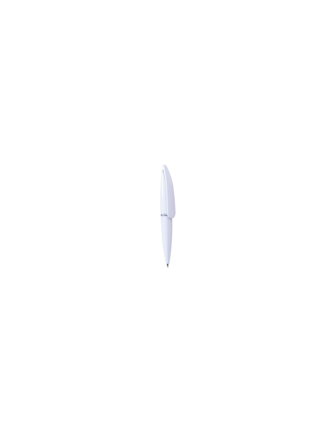 Mini bolígrafo de mecanismo giratorio en llamativos colores sólidos. Con original clip de gran tamaño y anilla central en color plateado. Tinta azul.
