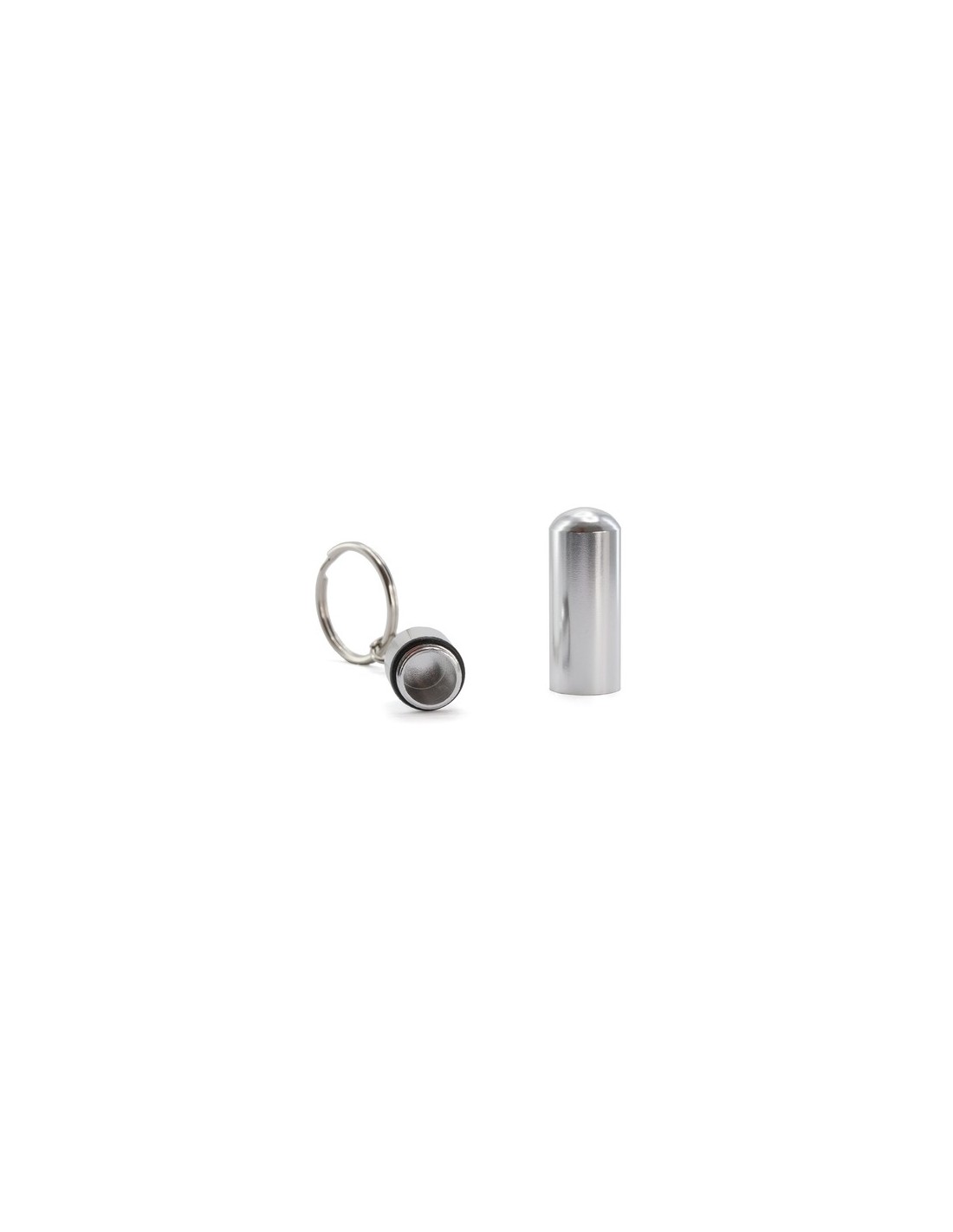 Llavero pastillero de discreto diseño con cuerpo en aluminio de acabado brillante y cierre a rosca. 1 Compartimento Composition : Aluminio.