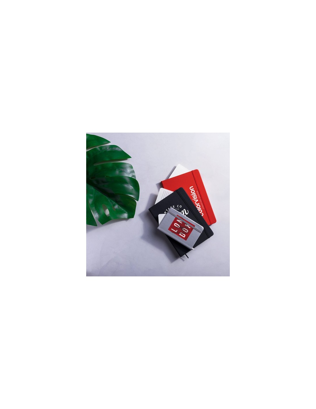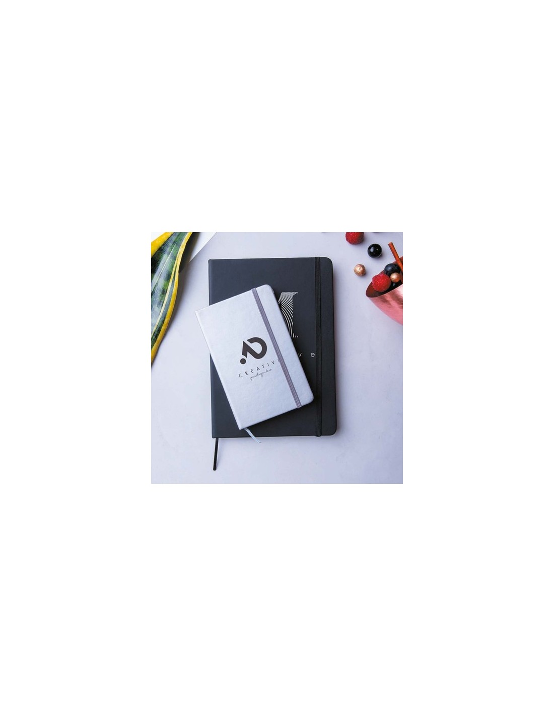 Bloc de notas con tapas duras fabricado en polipiel de suave tacto. Con marcapáginas disponible en variada gama de colores y elástico de cierre a juego. Interior con 100 hojas lisas. Portada Rígida. 100 Hojas Composition : Polipiel.