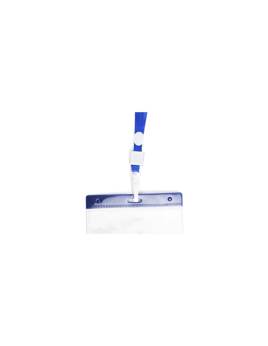 Identificador en PVC con lanyard a juego en vivos colores y con cierre de mosquetón. Pastilla circular para marcaje. Composition : Poliéster/ PVC.
