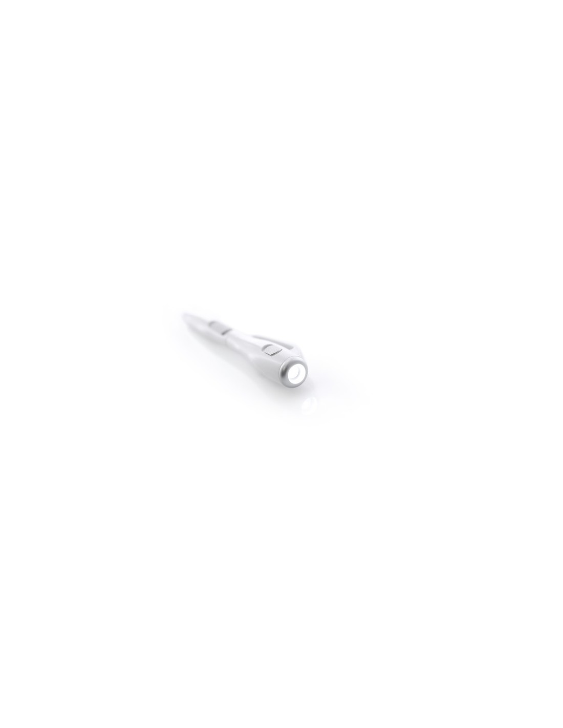 Bolígrafo con linterna led integrada. De mecanismo pulsador lateral y en diseño minimalista de original combinación de colores gris y blanco. En tinta azul y con pilas de botón incluidas. 1 Led. Pilas Botón Incluidas