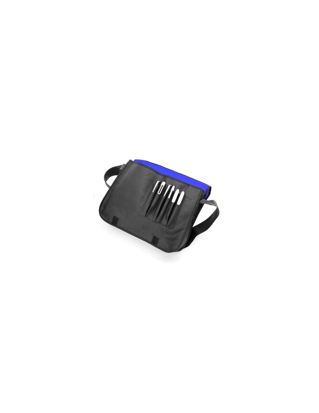 Portadocumentos con solapa de cierre de velcro en resistente non-woven con elegante ribete en color negro. Con compartimentos interiores para bolígrafos. Composition : Non-Woven.