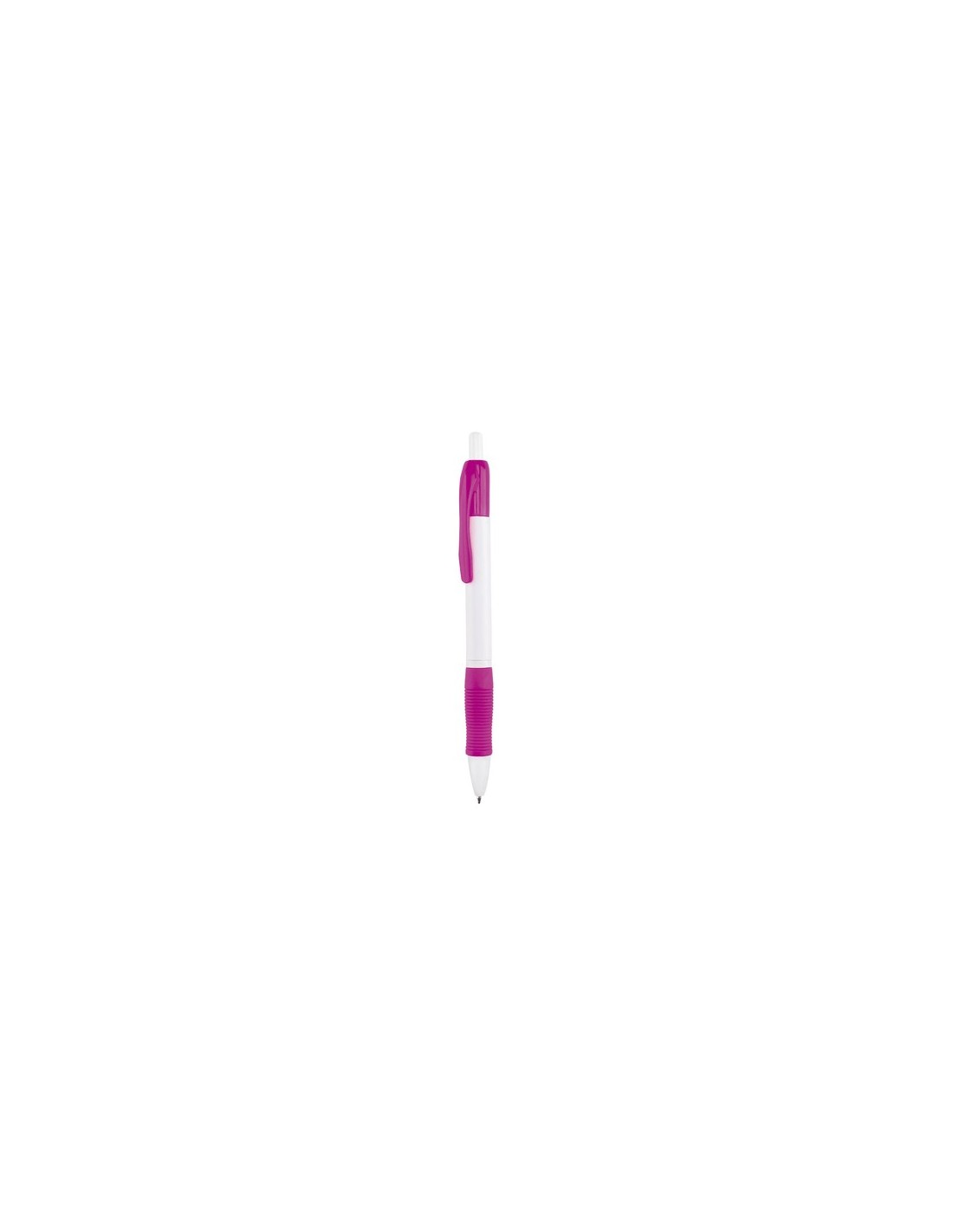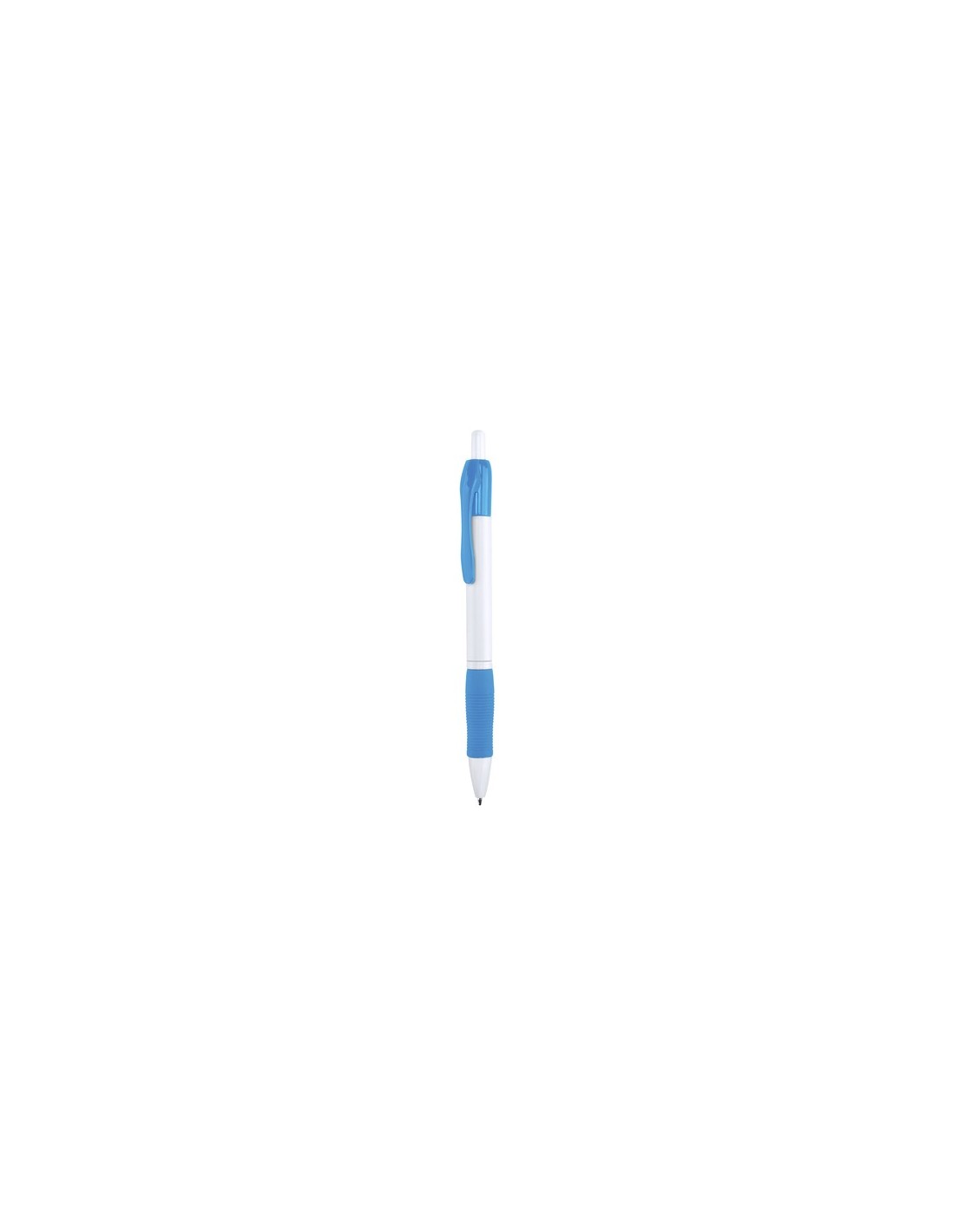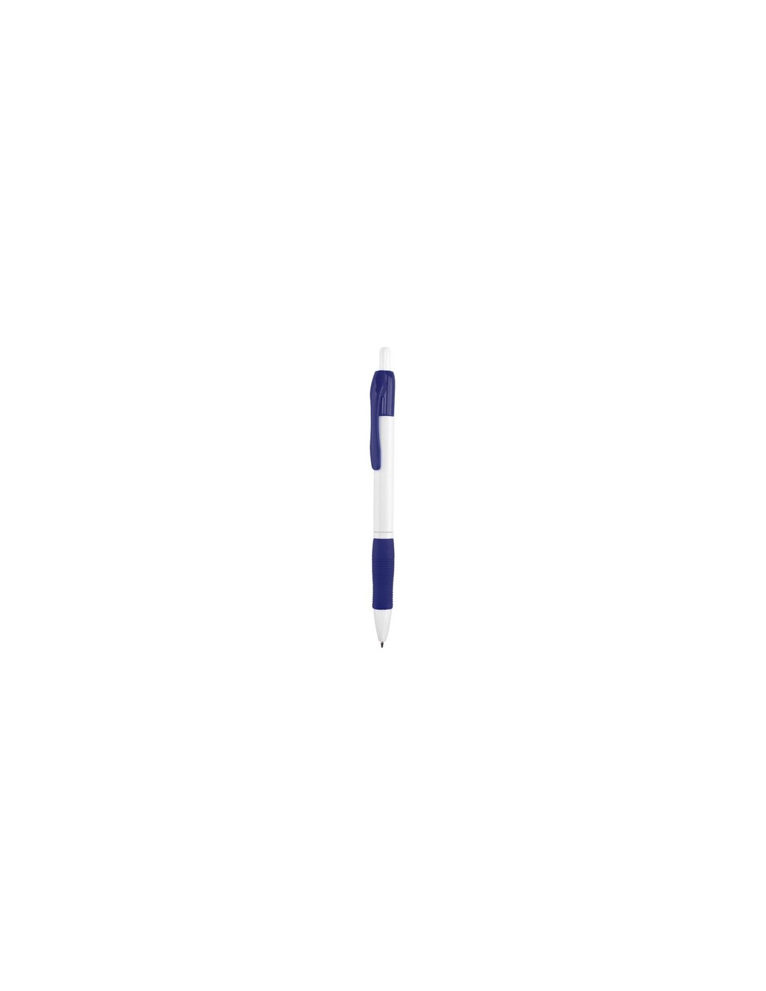 Clásico bolígrafo con mecanismo de pulsador, de atrevido diseño y cuerpo de color blanco sólido en suave acabado. Con cómoda empuñadura y clip a juego. Tinta azul.