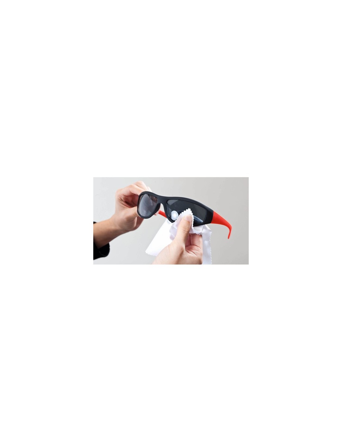 Paño limpiador en suave microfibra y diseñado para marcaje en sublimación. Laterales reforzados mediante corte de seguridad en zigzag. Composition : Microfibra/ Poliéster.