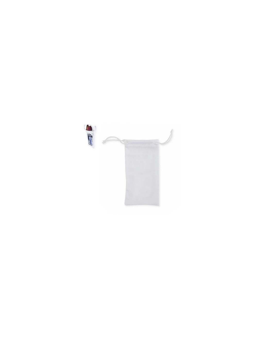Funda de suave poliéster con cuerpo acabado en color blanco y cierre de cuerdas a juego. Especialmente diseñada para marcaje en sublimación. Composition : Poliéster.