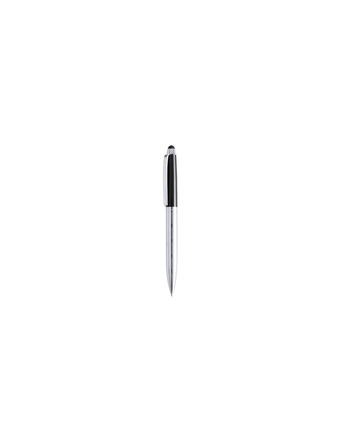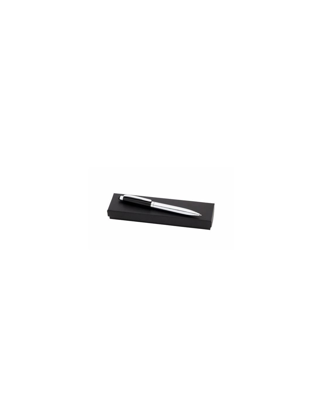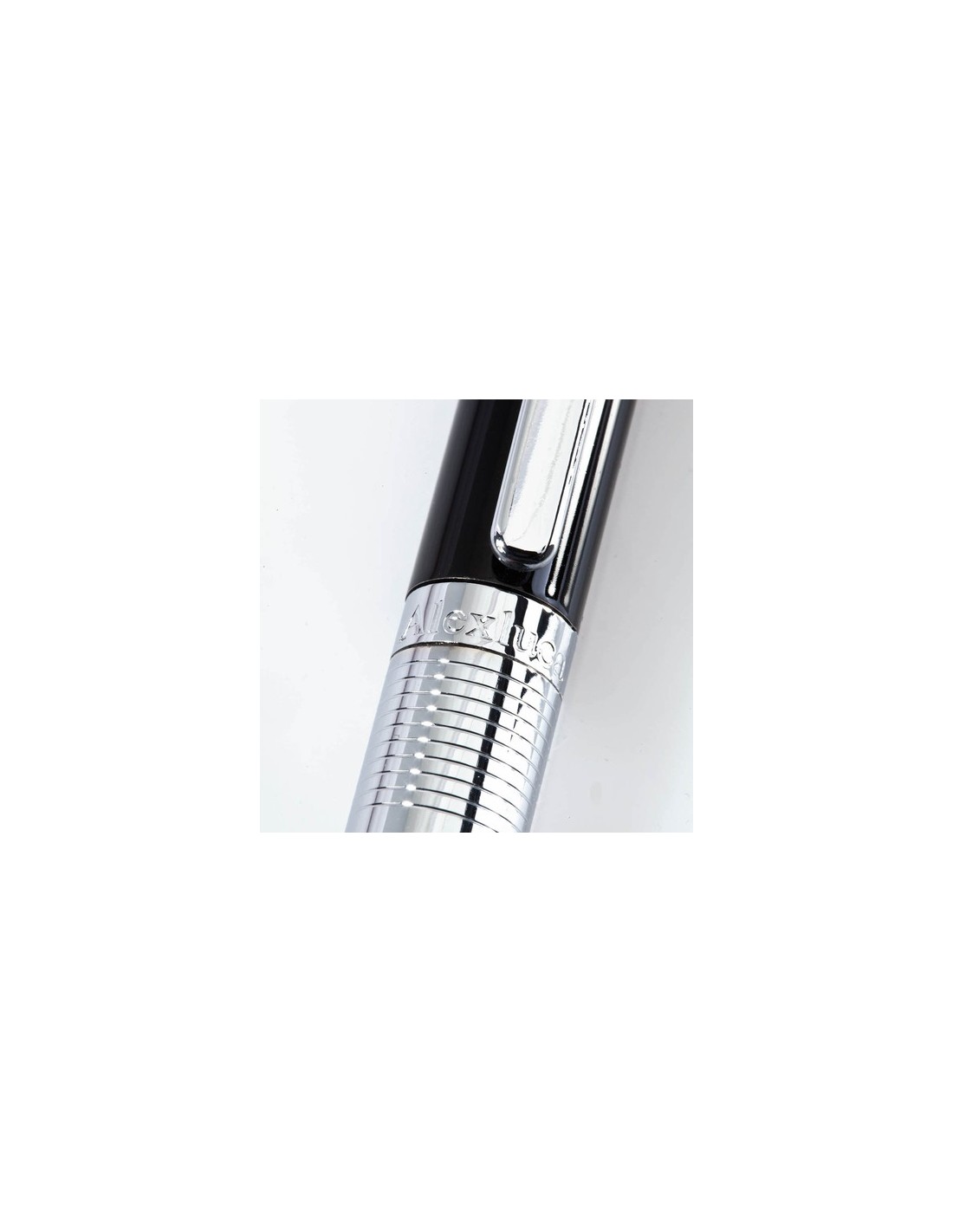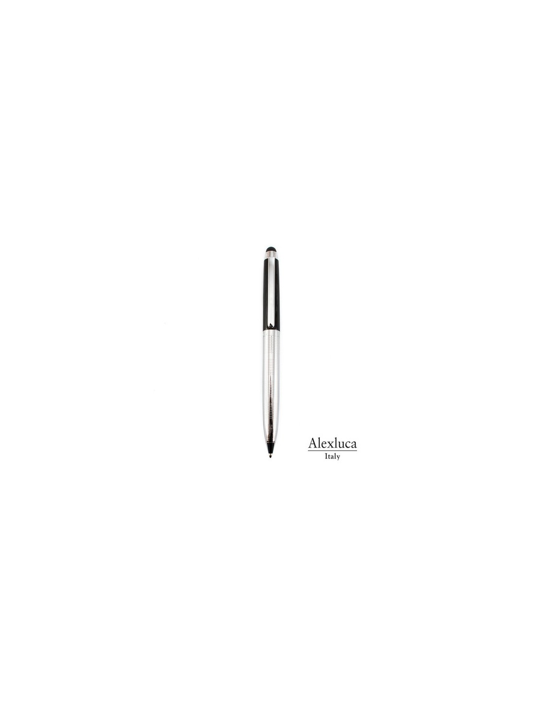 Bolígrafo puntero de Alexluca de mecanismo giratorio con suave cuerpo metálico, de elegante combinación de colores en plateado y negro. Clip y empuñadura de diseño a juego. Presentado en estuche individual negro con logotipo de la marca. Tinta azul. Composition : Metal.