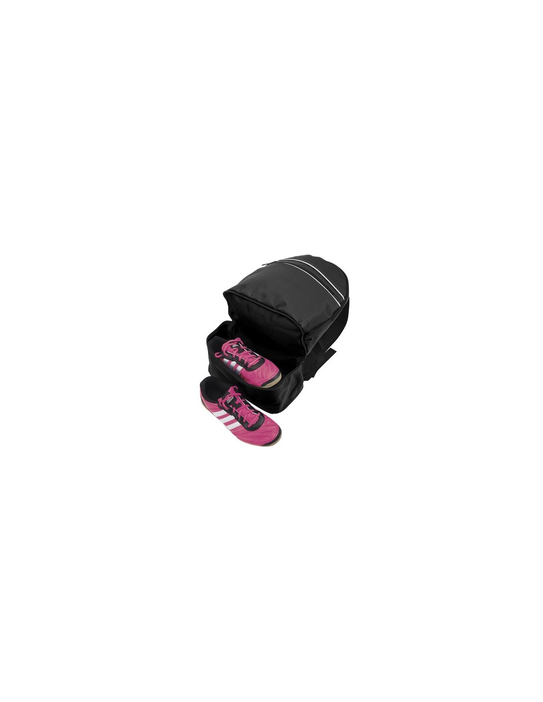 Mochila en resistente poliéster 600D de desenfadado diseño en variada gama de colores y con compartimento independiente para el calzado. De cierre de cremallera con cinta en tirador para fácil apertura y bolsillo frontal. Espalda acolchada y cintas de hombros ajustables con acolchado ergonómico. Parte Trasera y Cintas Acolchadas. Compartimento Portazapatos Composition : Poliéster 600D.
