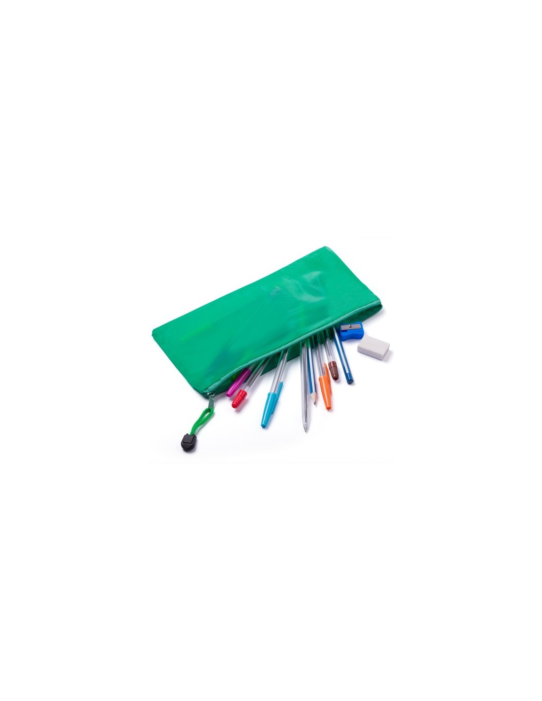Estuche de cremallera con suave cuerpo acabado en PVC de viva gama de colores. Con cinta a juego en tirador para fácil apertura. Composition : PVC.
