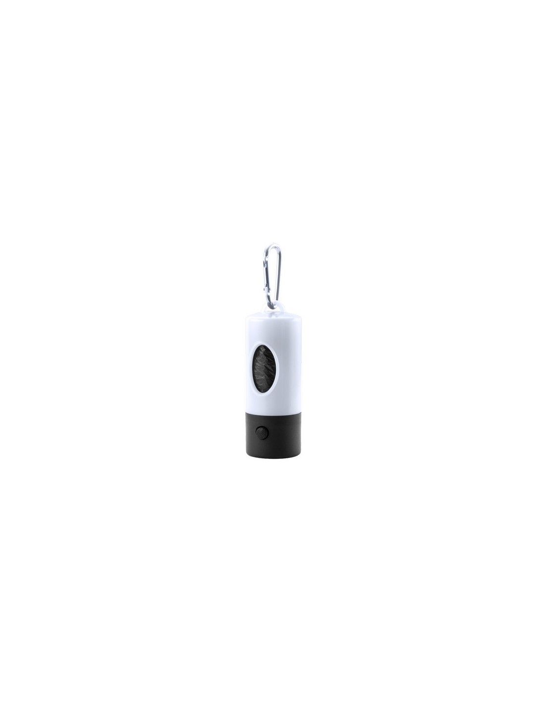 Dispensador de bolsas para mascotas con resistente cuerpo en vivos colores. Con linterna LED integrada. Incluye 15 bolsas. 1 Led. 15 Bolsas Incluidas. Pilas Botón Incluidas