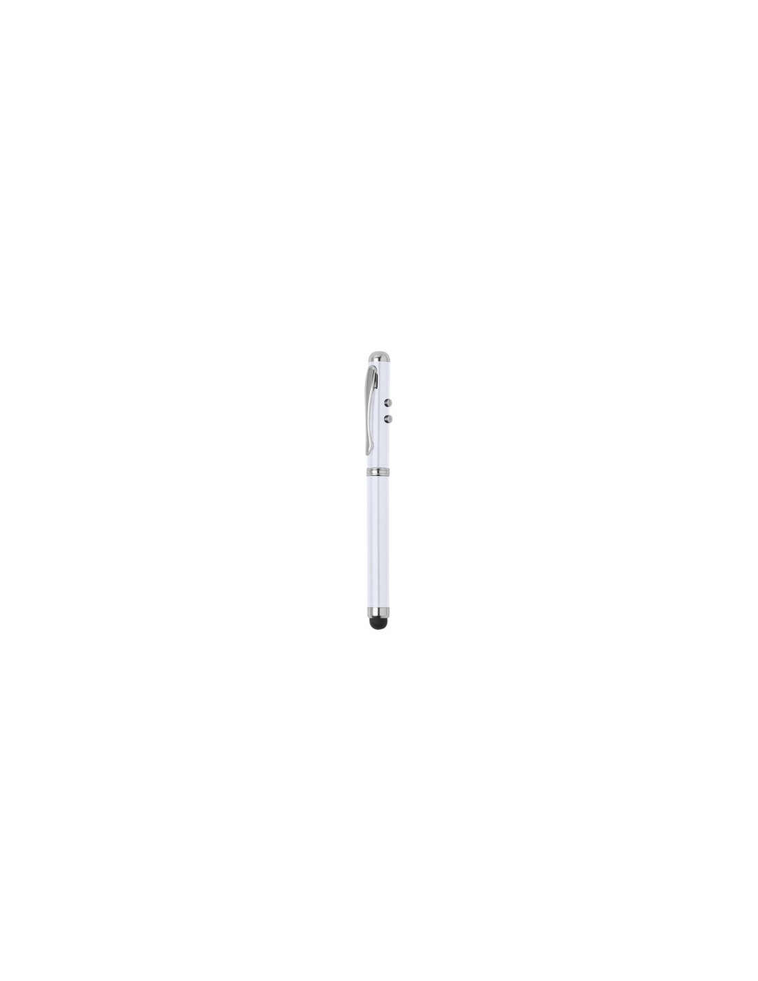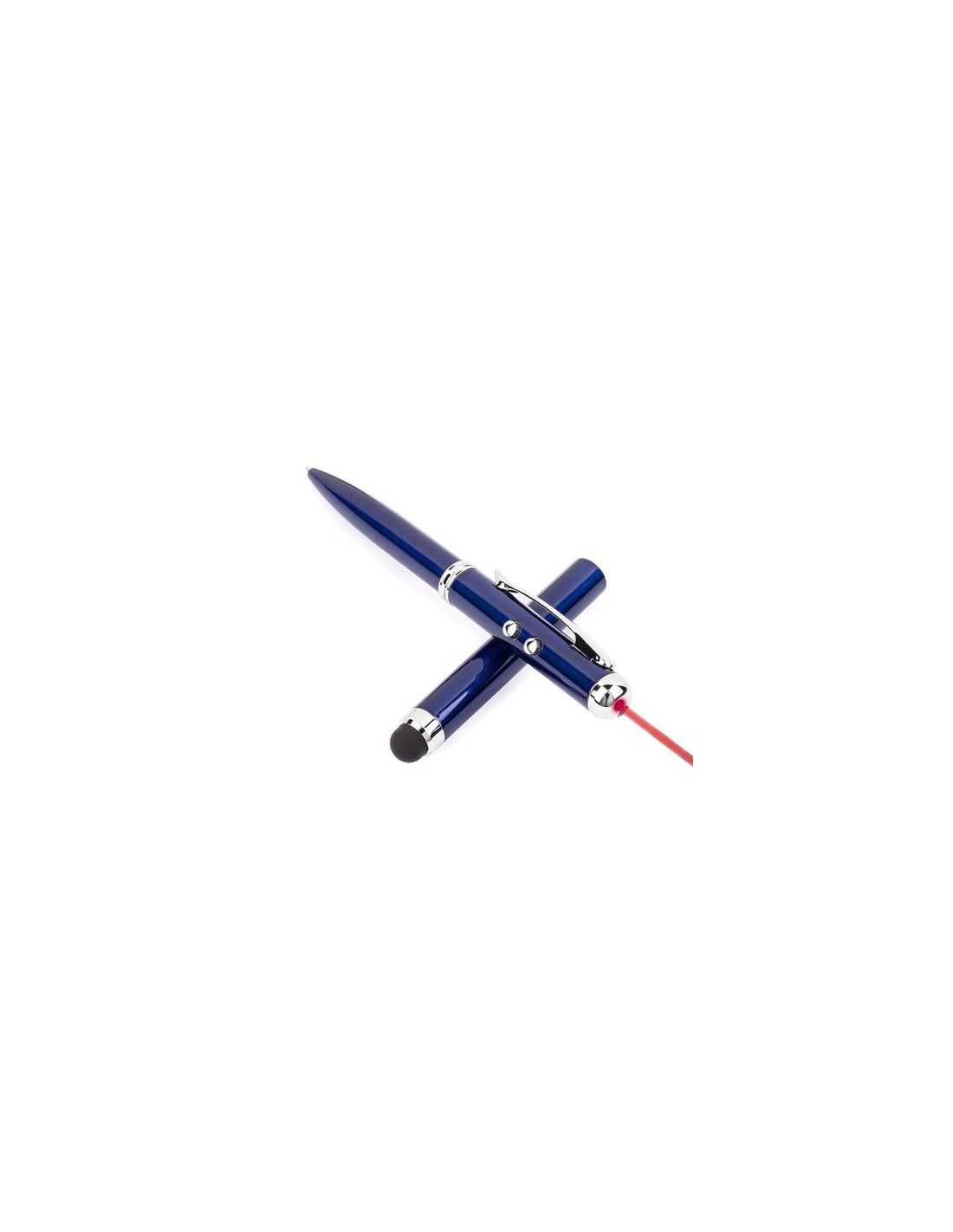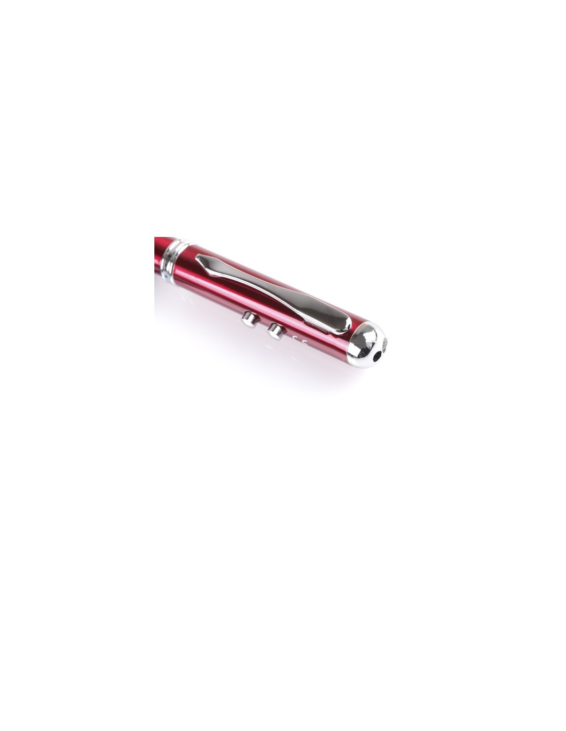 Bolígrafo láser metálico en elegante acabado brillo, con pulsadores de activación laterales para funciones láser y linterna (pilas de botón incluidas). En tinta azul, con puntero táctil integrado, cierre de capucha y clip cromado. Especialmente diseñado para marcaje en láser. Presentado en un elegante estuche metálico en caja individual de cartón de acabado plateado. Interior en suave esponja troquelada, con pilas de recambio. 1 Led. Pilas Botón Incluidas Composition : Metal.