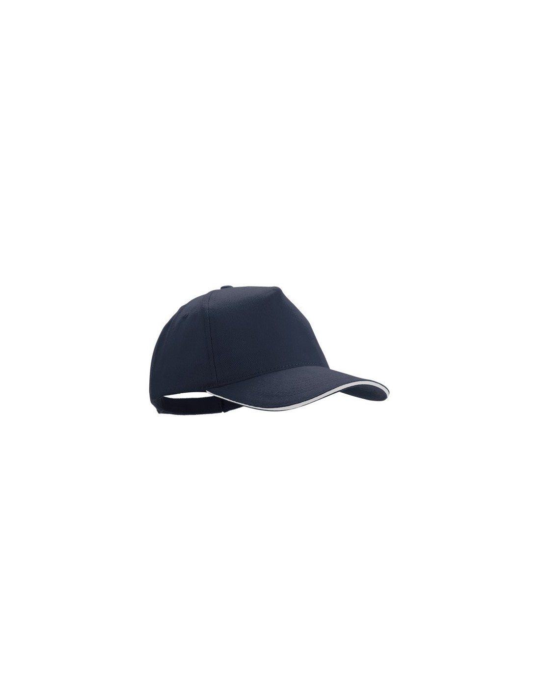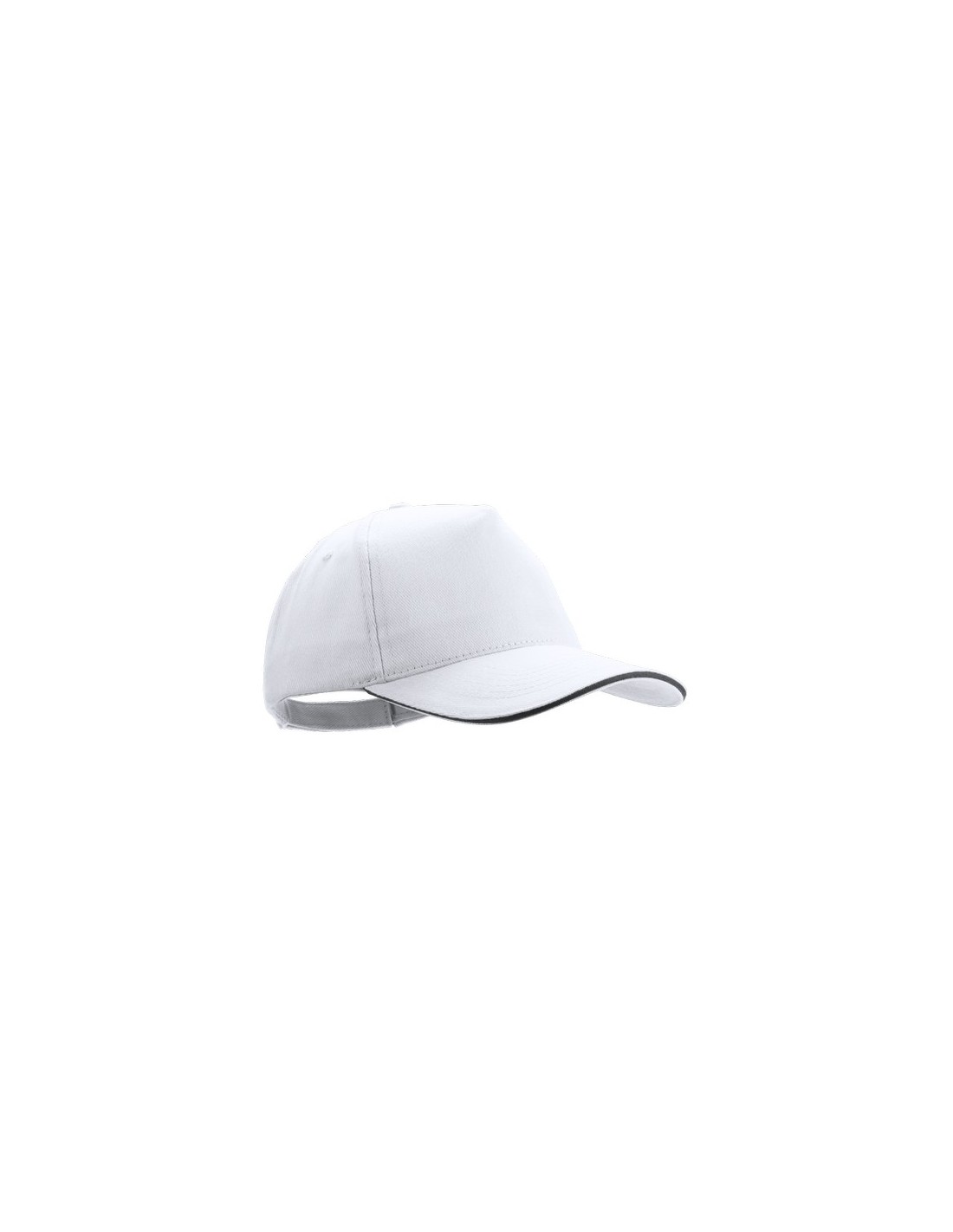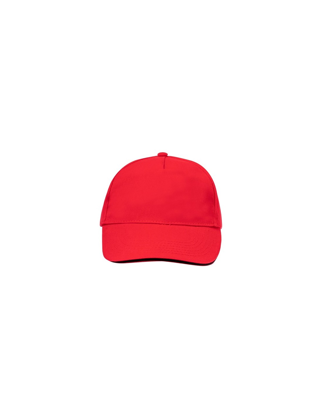 Gorra de 5 paneles en material 100% algodón peinado. En variada gama de vivos colores, con sandwich en color y acolchado en visera. Orificios de ventilación bordados y cierre ajustable de velcro. 5 Paneles. Cierre Velcro Composition : 100% Algodón Peinado.