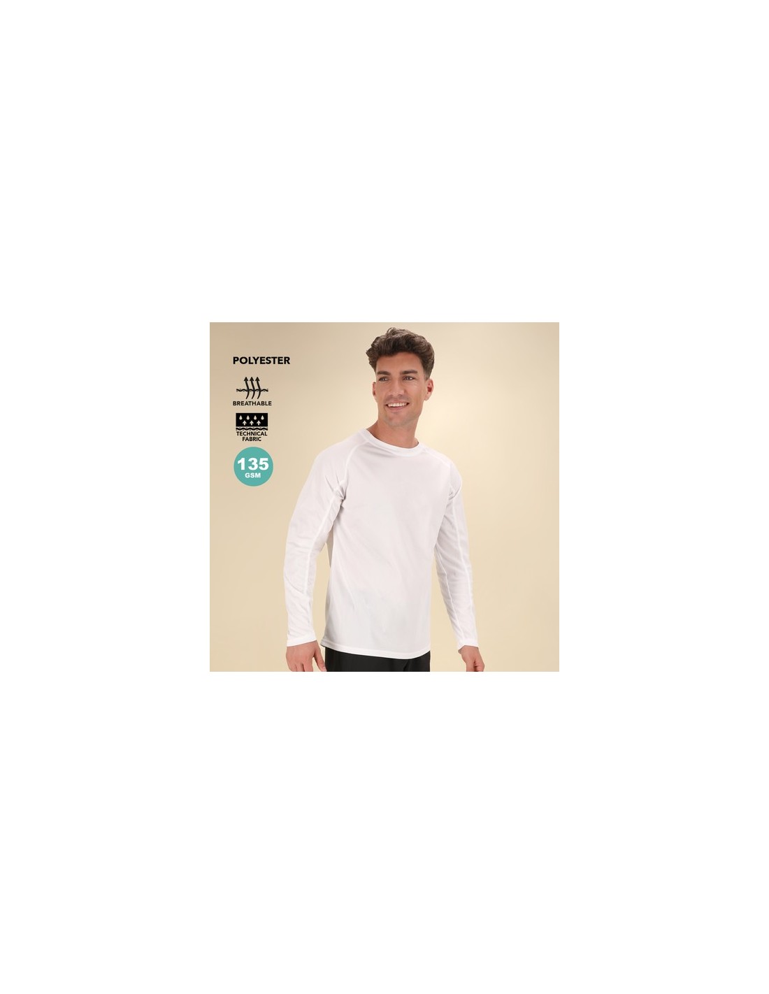 Camiseta técnica de manga larga para adulto, en material 100% poliéster transpirable de 135g/m2. Disponible en variada gama de vivos colores y en tallas S, M, L, XL, XXL. Transpirable Composition : 100% Poliéster 135 g/ m2.