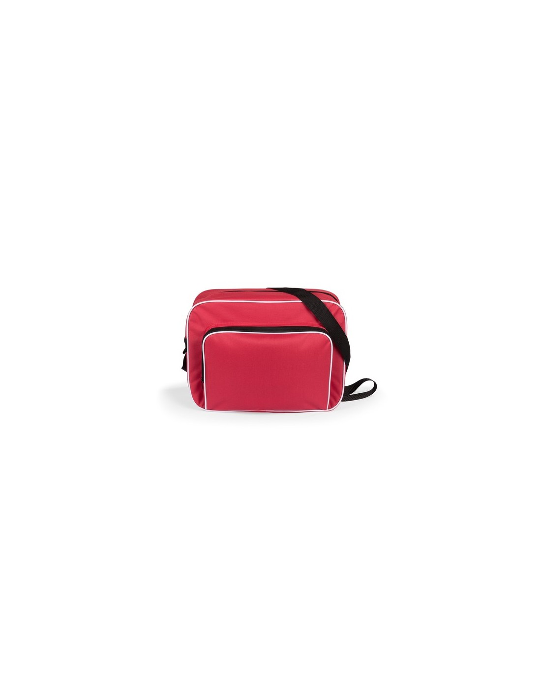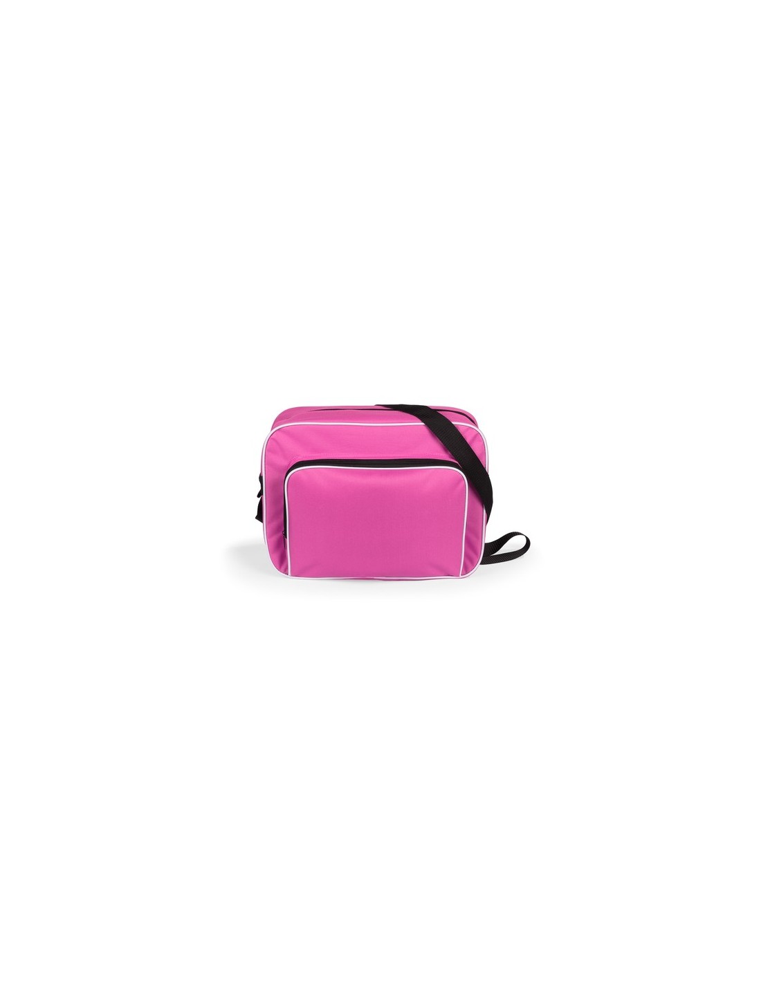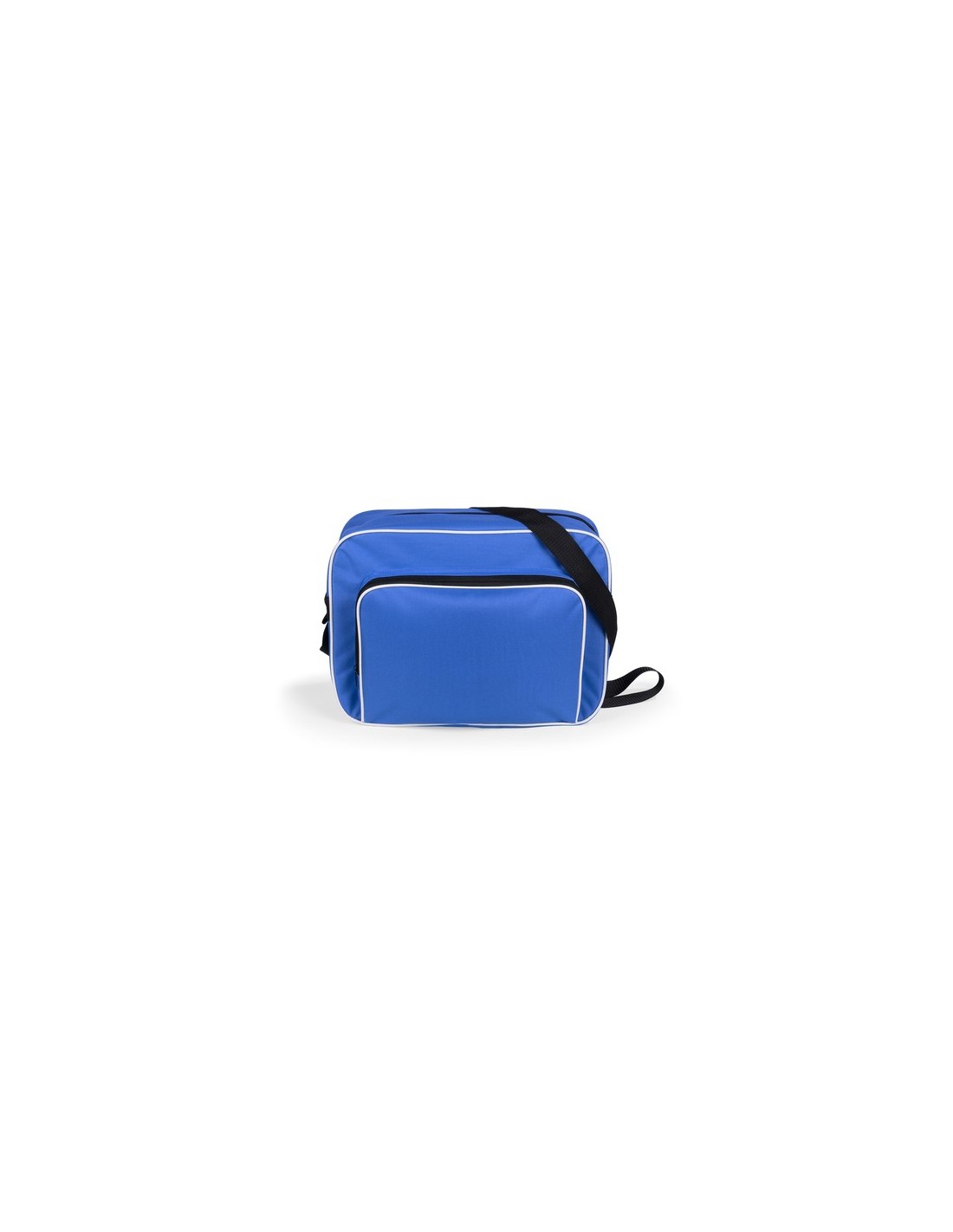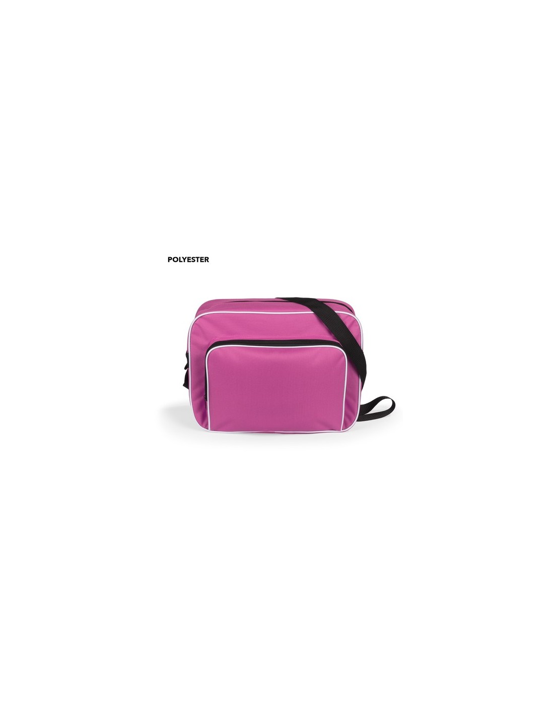 Bolso multiusos en resistente poliéster 600D de desenfadado diseño bicolor en amplia gama de colores, con ribetes de refuerzo en color blanco. Compartimento principal y bolsillo exterior con cierre de cremallera en color negro. Con resistente cinta bandolera ajustable en color negro. Base reforzada con superficie antideslizante. Composition : Poliéster 600D.