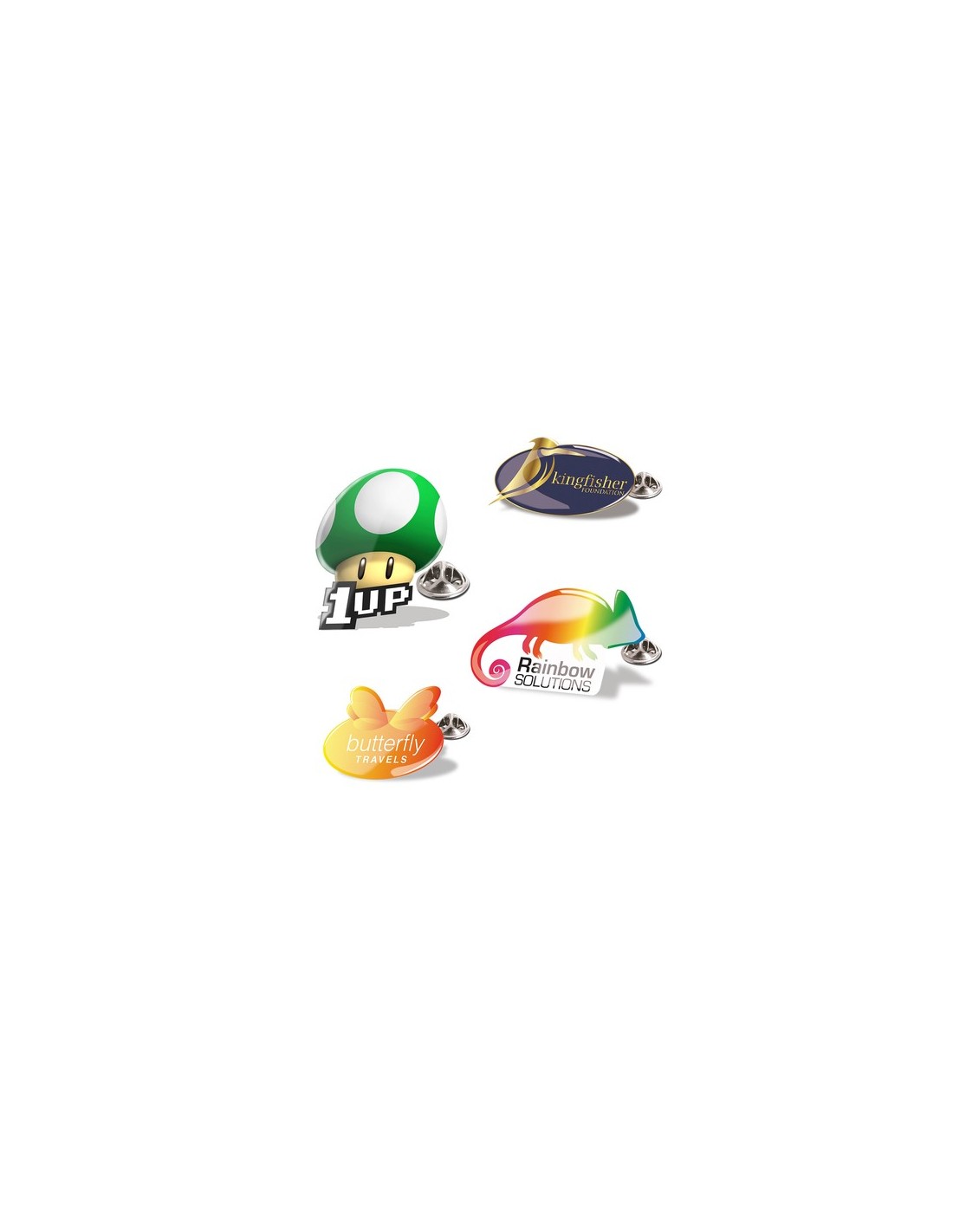 Pin 100% personalizable especialmente diseñado para marcaje en doming/gota de resina. Impresión a todo color incluida y doming incluido. Para pedidos a partir de 300 unidades. Cliché no incluido.