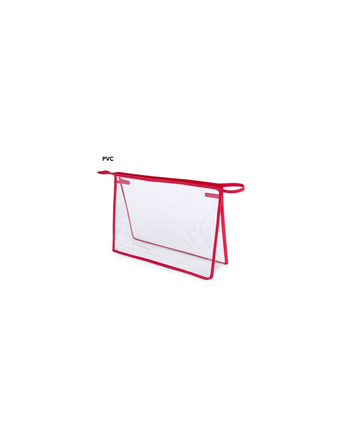 Neceser multiusos en resistente PVC transparente con ribetes de refuerzo en vivos colores. Con cremallera y asa de transporte a juego. Composition : PVC.