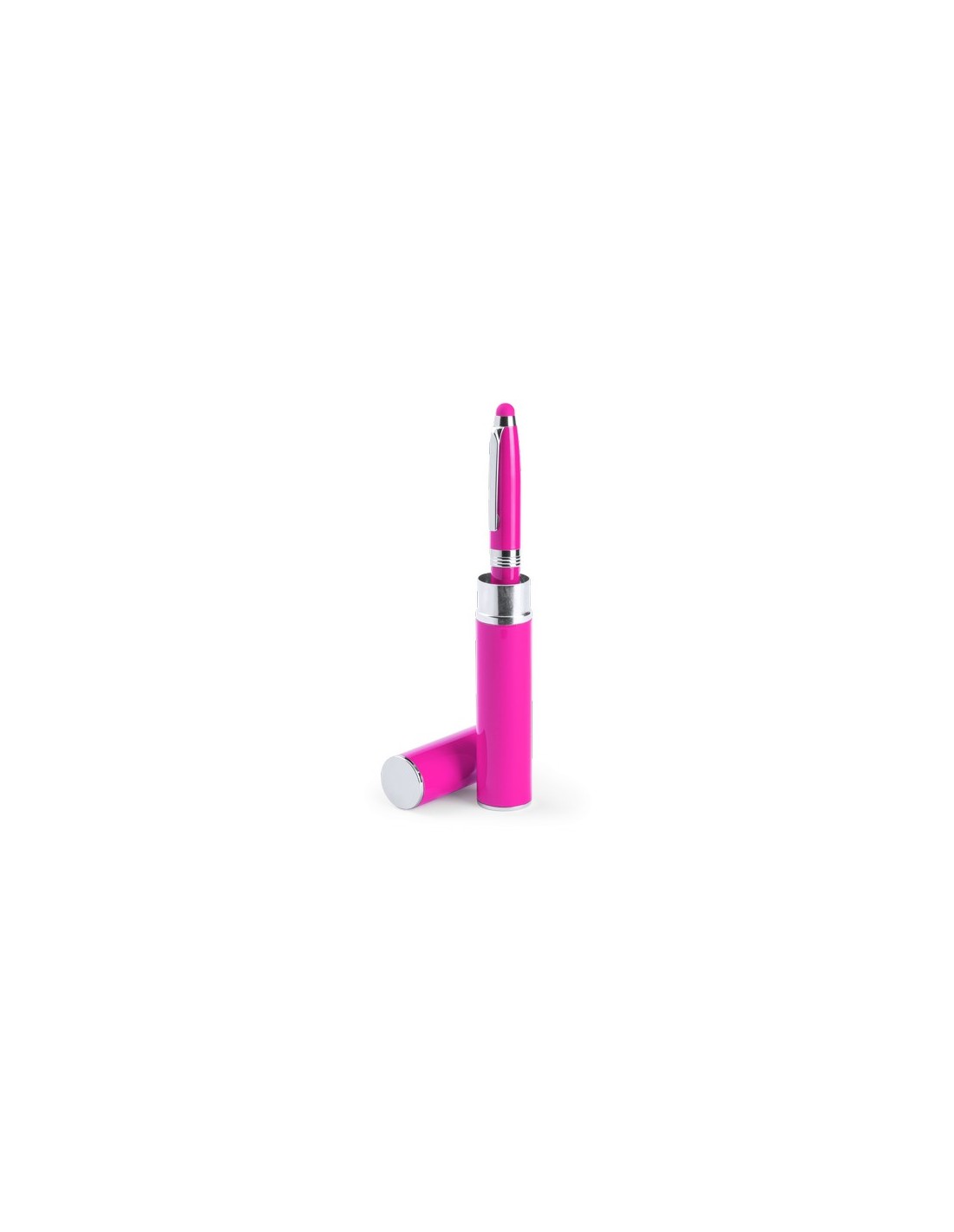 Bolígrafo puntero de mecanismo giratorio con cuerpo metálico de suave acabado en alegres colores. Accesorios y anillas en color plateado. Con puntero a juego y presentado en original estuche metálico a juego. De cartucho jumbo y tinta azul. Carga Jumbo Composition : Metal.