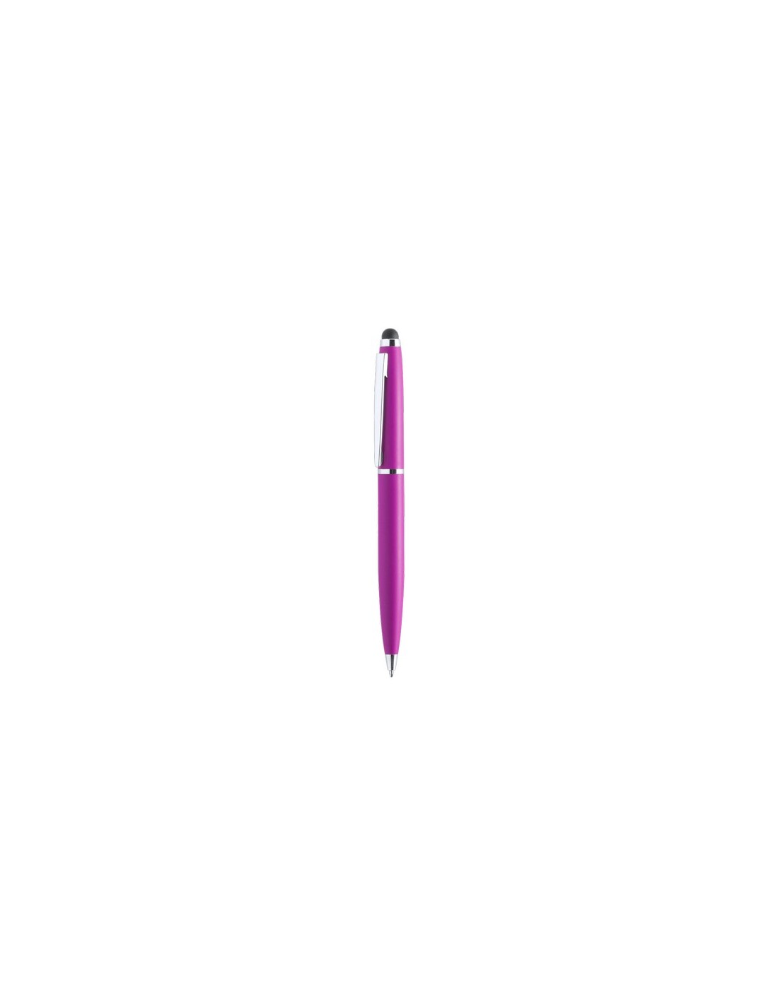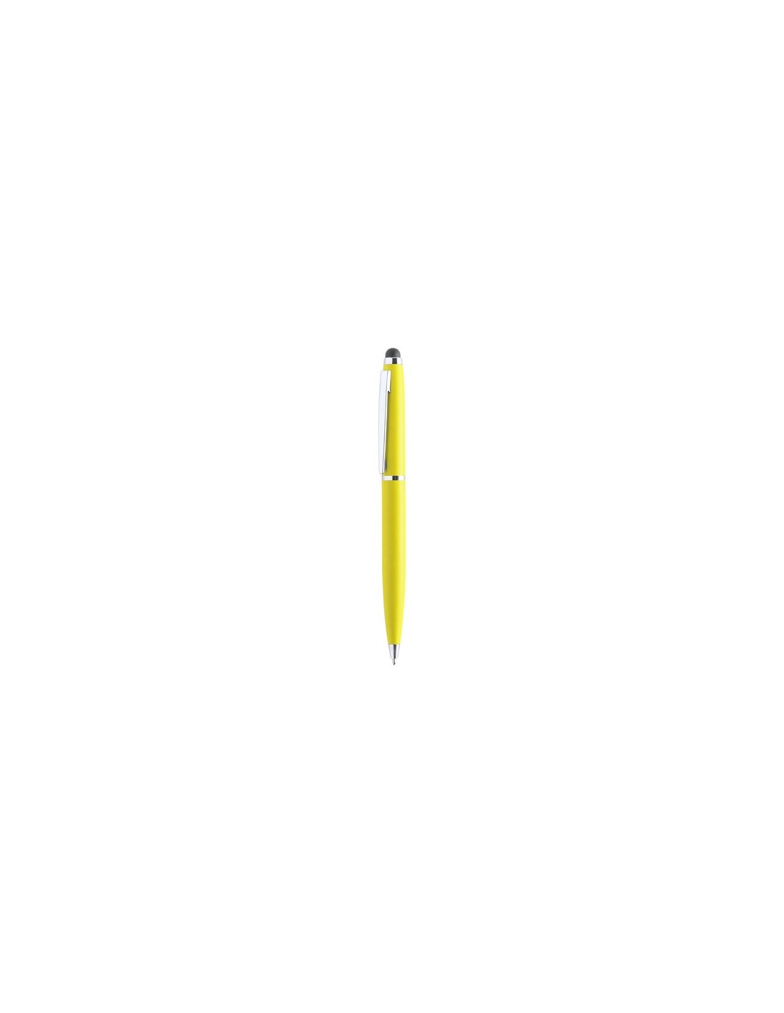 Bolígrafo puntero de mecanismo giratorio con cuerpo metálico de suave acabado en alegres colores. Accesorios y anillas en color plateado. Tinta azul. Composition : Metal.
