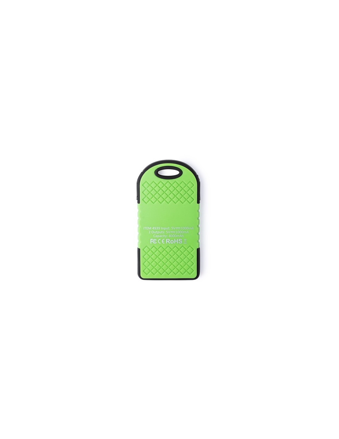 Resistente batería auxiliar externa de recarga solar y de gran capacidad de carga -4.000mAh-. De corte deportivo y recubierta de suave silicona. Especialmente diseñada para actividades al aire libre, resistente a las salpicaduras de agua y con mosquetón de transporte en aluminio. Salida USB dual para cargar dos dispositivos simultáneamente, con LEDs indicadores de estado de carga y potente luz LED con señalización SOS para usar en caso de emergencia. Incluido cable de carga micro USB. Disponible en variada gama de colores, con presentación en atractiva caja individual de diseño. Las capacidades mostradas en todas nuestras baterías auxiliares externas son reales, incorporando todas ellas baterías de grado A y no recicladas, con una vida útil de al menos 500 ciclos de carga y según normativa CE. Además, el artículo está fabricado conforme a los estándares RoHS, cumpliendo con los siguientes requisitos de seguridad: Sistema de protección contra sobrecarga del dispositivo Sistema de protección contra descarga completa que proporciona una mayor durabilidad. Sistema de bloqueo para evitar cortocircuitos. Sistema de transferencia de carga constante, acorde con la capacidad del dispositivo de destino. 1 Led Intermitente. 4000 mAh. Carga Solar. 2 Salidas USB. Entrada Micro USB