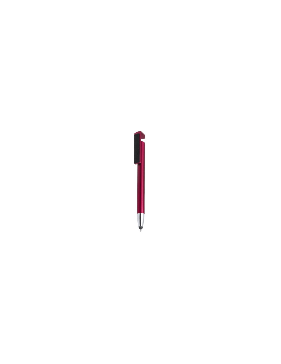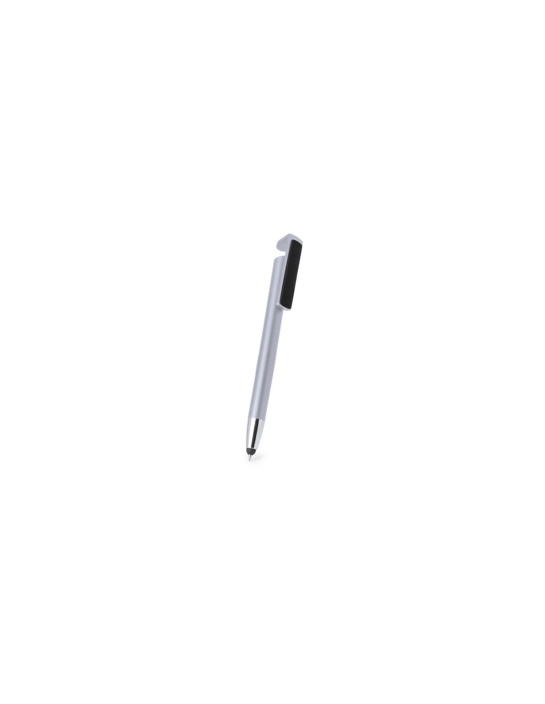Bolígrafo puntero multifunción de mecanismo pulsador en desenfadados colores y con clip de doble función especialmente diseñado para servir como soporte para dispositivo móvil y también como limpiador de pantalla. Con cuerpo en acabado metalizado, especialmente diseñado para marcaje en tampografía y tinta negra. Tinta Negra. Limpiapantallas Incluido