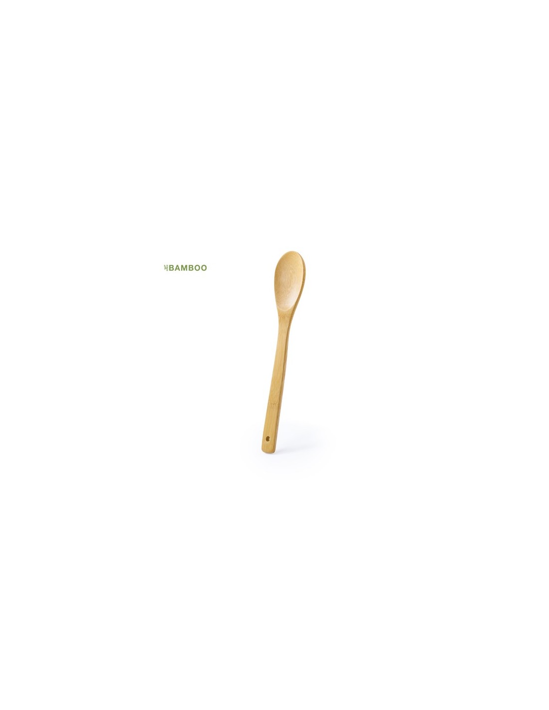 Cuchara de cocina en madera de bambú. Presentada en bolsa individual con cartón troquelado de refuerzo. Composition : Bambú.