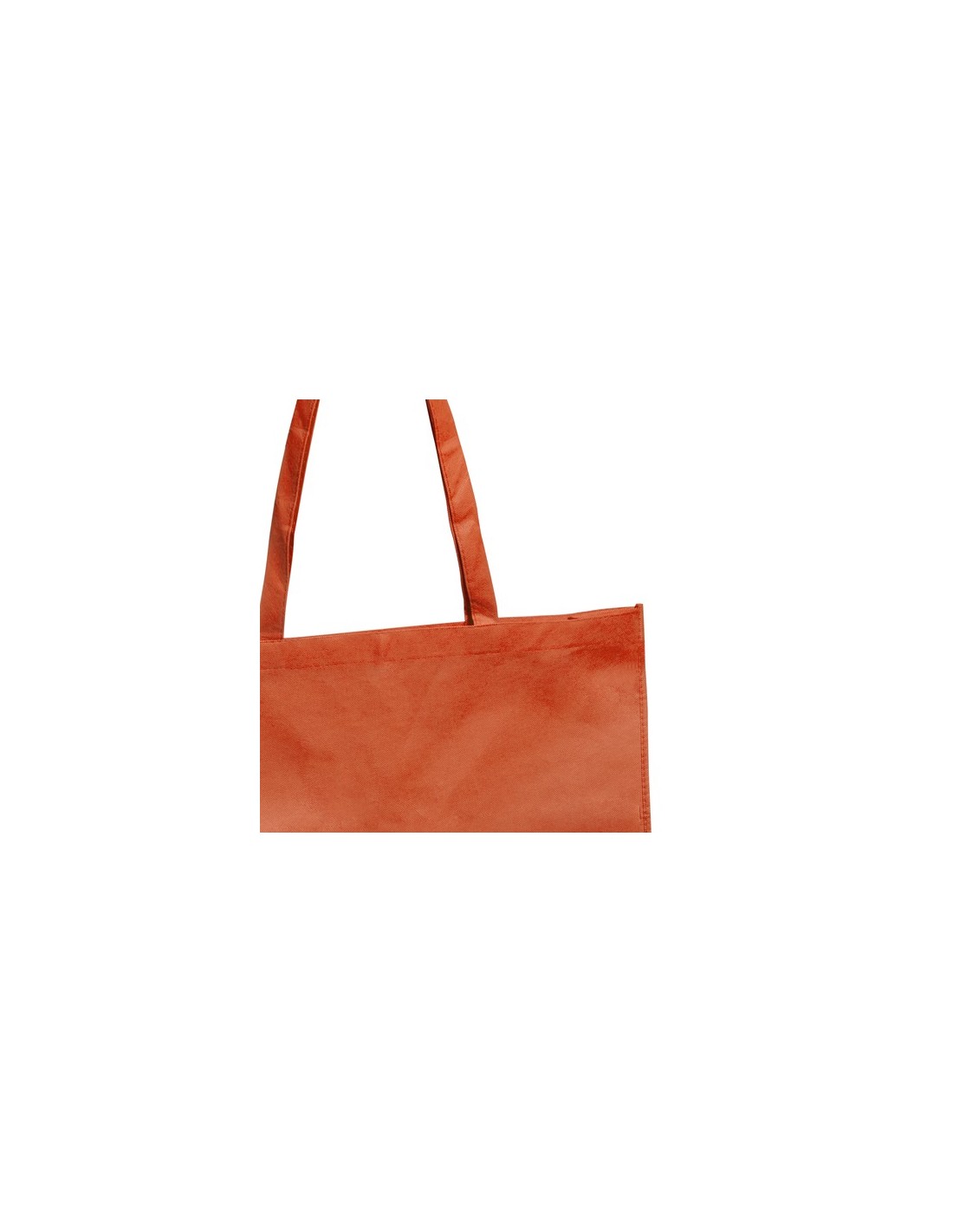 Bolsa en non-woven de 80g/m2, en variada gama de vivos colores. Con asas largas de 75cm, fuelle reforzado con ribete a juego y acabado cosido. Resistencia hasta 4kg de peso. Composition : Non-Woven.