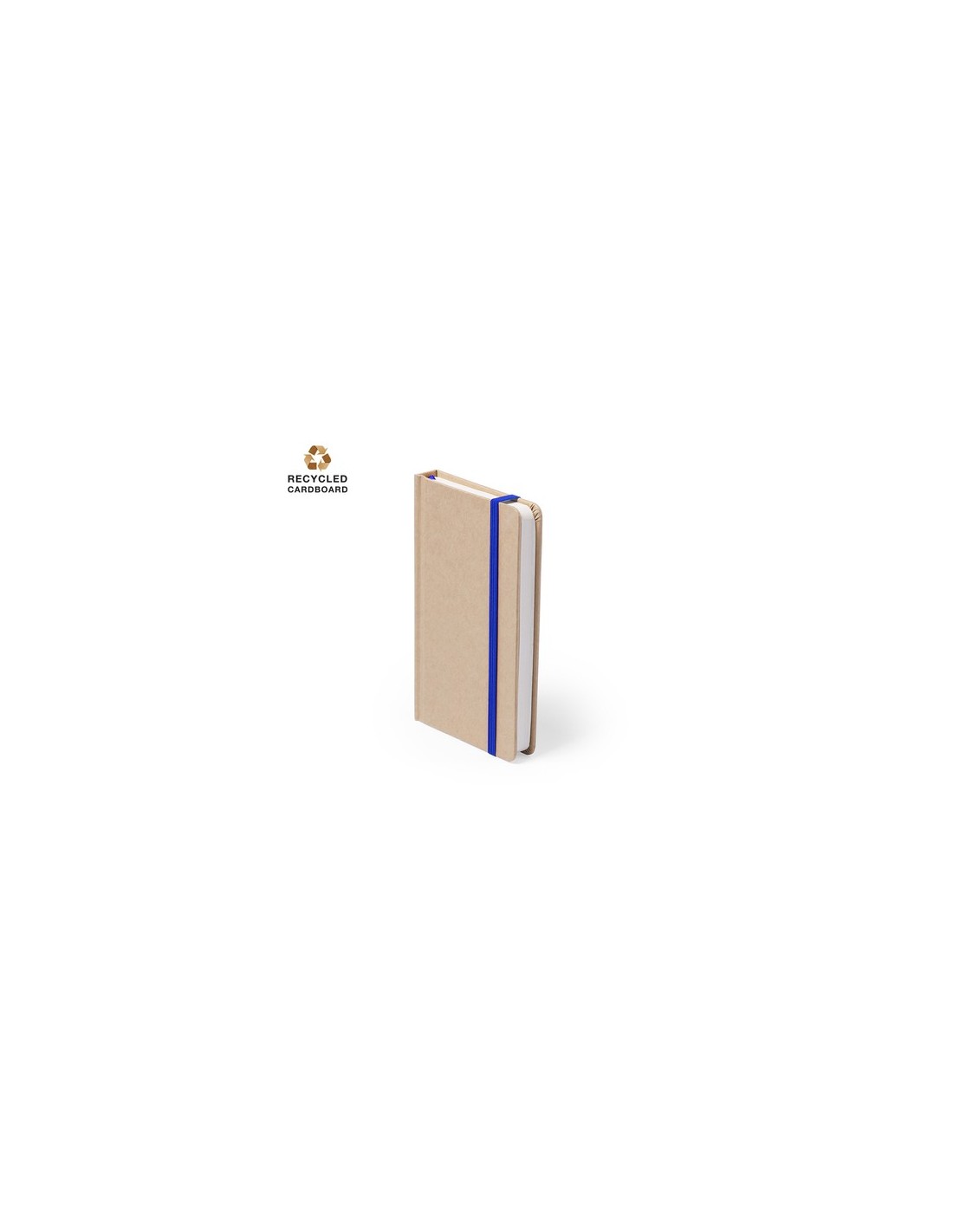 Bloc de notas con tapas de suave tacto acabadas en resistente cartón natural. De 100 hojas lisas, con elástico de sujeción y marcapáginas de tela a juego. Portada Rígida. 100 Hojas Composition : Cartón Reciclado.