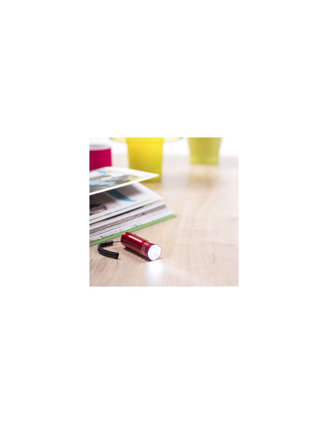 Linterna de 9 ledes de alto poder de iluminación. Con resistente cuerpo en aluminio, pulsador protegido con recubrimiento de resistente goma y cinta de transporte. Alimentación a pilas: 3xAAA no incluidas. Presentada en caja individual. 9 Ledes. 3 Pilas AAA No Incluidas Composition : Aluminio.