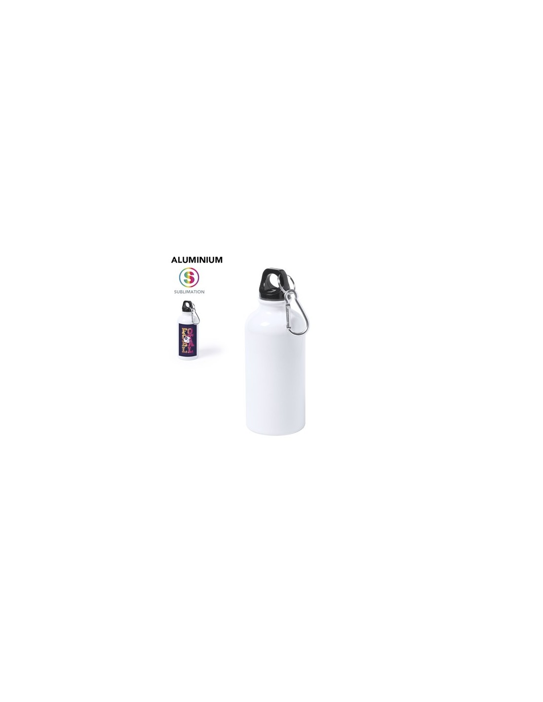 Bidón de 400ml de capacidad con cuerpo de acabado en suave y brillante color blanco, especialmente diseñado para marcaje en sublimación. Con tapón de seguridad a rosca y mosquetón metálico de transporte. Presentado en caja individual. Disponible manual de instrucciones en español e inglés. 400 ml Composition : Aluminio.